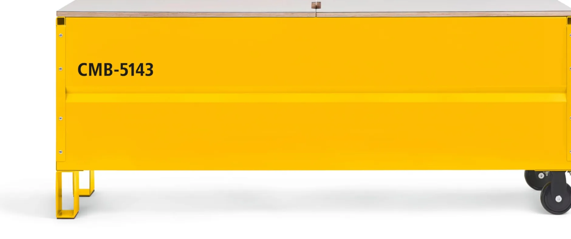 Als Truhe und Sitzbank zu nutzen – CMB ist die zeitgenössische Interpretation eines der ältesten Möbeltypen. Truhen unterschiedlicher Art dienen seit ewigen Zeiten als Aufbewahrungs- und Transportmittel. CMB ist ein würdiger Vertreter dieser Produktgattung. Sie erfüllt vielfältige Aufgaben in Haushalt, Büro und Wohnbereich. So ist sie im Schlafzimmer Stauraum für Bettwäsche, Wolldecke und Winterbekleidung im Sommer. Sie dient im Flur als Platz für den Zeitungsstapel, oder für die Unterbringung von Regenkleidung und Fahrradhelm, aber auch Getränkekisten finden Platz (aufgrund der unterschiedlichen Formate von Getränkekisten sind hierbei die Innenmaße von CMB zu berücksichtigen). Dank des entsprechenden Höhenmaßes erfüllt sie auch ihre Rolle als Sitzplatz für zwei Personen – oder für drei Kleine – am Küchentisch oder in der Diele. Der Transport von CMB fällt leicht, denn die an einer Stirnseite angebrachten Bockrollen und die Eingriffe an den Seiten ermöglichen leichtes Manövrieren auch im beladenen Zustand. Der Inhalt ist über die beiden mit Linoleum belegten und komplett abnehmbaren Holzdeckel leicht zugänglich. Wir mögen den industriellen Charme dieses dienstbaren Möbels.