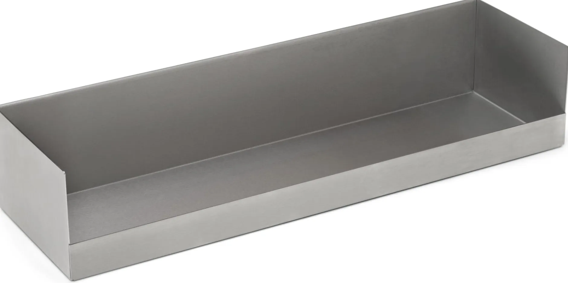 BOKS für Bücher, Arbeitsgerät, Küchenzeug und Flurkram. In dieser Version aus Edelstahl mit industrieller Ausstrahlung. Dieses Regal ist kräftig und kompakt, einzeln einsetzbar aber auch mehrfach über- oder nebeneinander. Ungewöhnlich ist seine wannenförmige Ausformung, die allseitig das Herausrutschen von untergebrachtem Inhalt verhindert und zudem für eine hohe Belastbarkeit sorgt. Das Regal wird mit einer separaten Montageleiste geliefert, die einfaches Anbringen und stabilen Halt gewährleistet. Schrauben und Standarddübel sind im Lieferumfang enthalten.