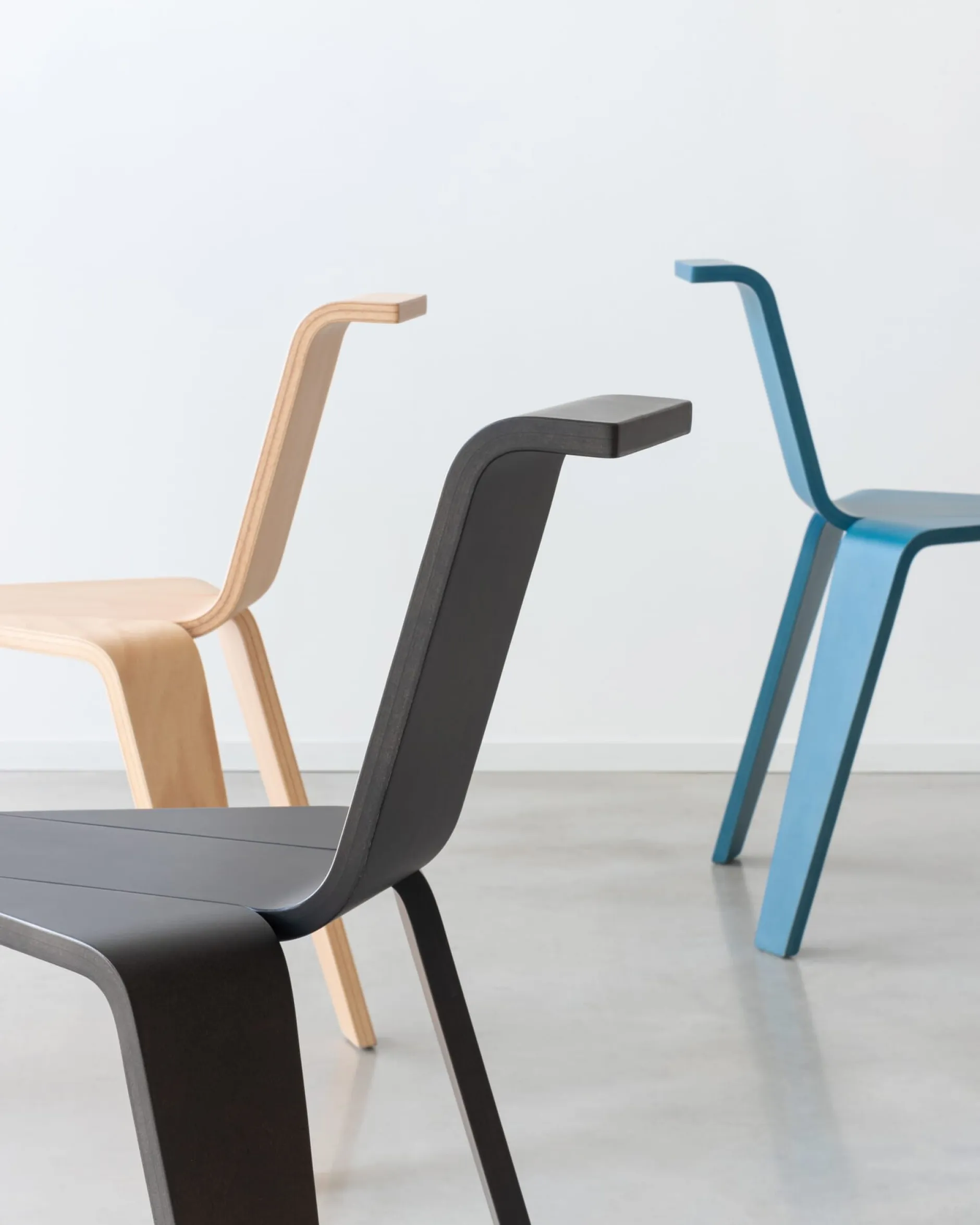 Ein formales Spiel dreier korrespondierender Formholzteile – AKA ist ein hybrides Möbelstück zwischen Stuhl, Objekt und Hocker: ausgewogene Proportion in formaler Perfektion, in der Konstruktionsweise den Stand der Formholztechnik markierend. Der zierliche Dreibeiner bietet überraschenden Sitzkomfort, ist somit bei geringem Raumangebot ein gut nutzbares Möbelstück oder objekthafte Ergänzung mit vielfältigem Nutzen in Wohnraum, Schlafraum, Flur oder Bad. In Italien aus zertifiziertem Holz produziert.