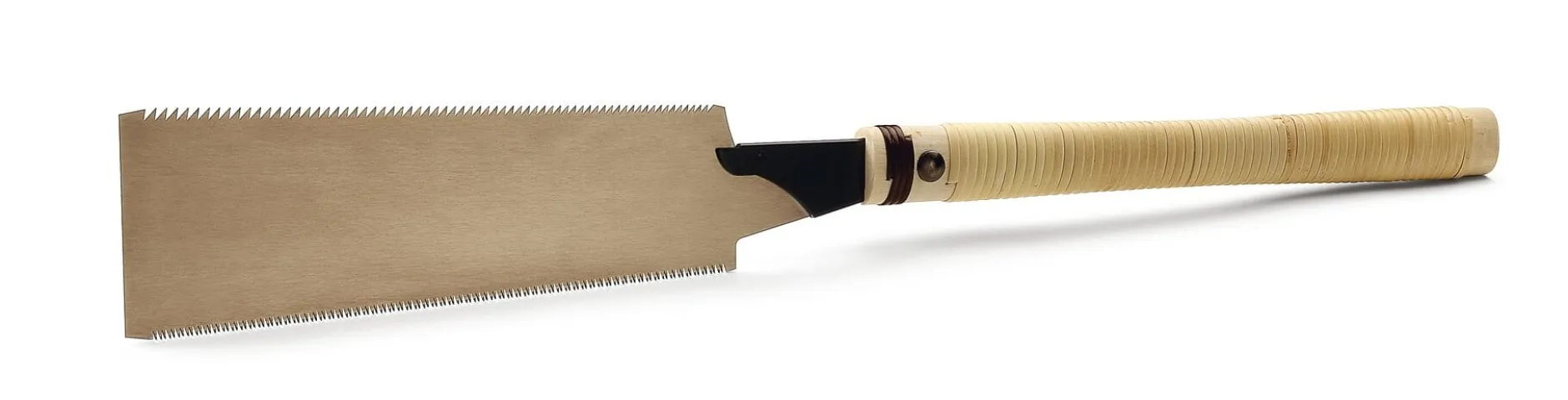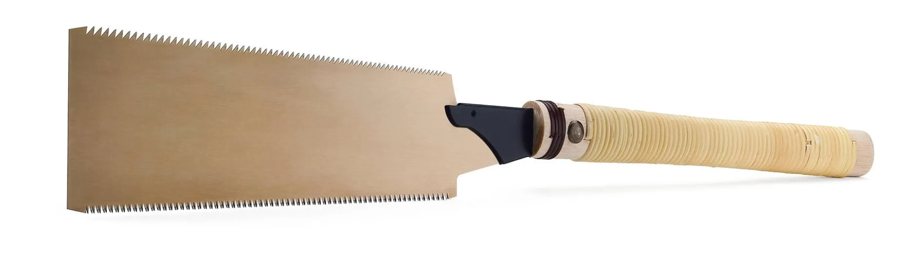 Die gebräuchlichste und vielseitigste japanische Säge. Das Blatt ist zweiseitig gezahnt: Dreieckszahnung (für Schnitte längs zur Faser) auf einer und Trapezzahnung (für Schnitte quer zur Faser) auf der anderen Seite. Blattlänge 24 cm, Blattstärke 0,5 mm. Gesamtlänge 58 cm. Gewicht 200 g.