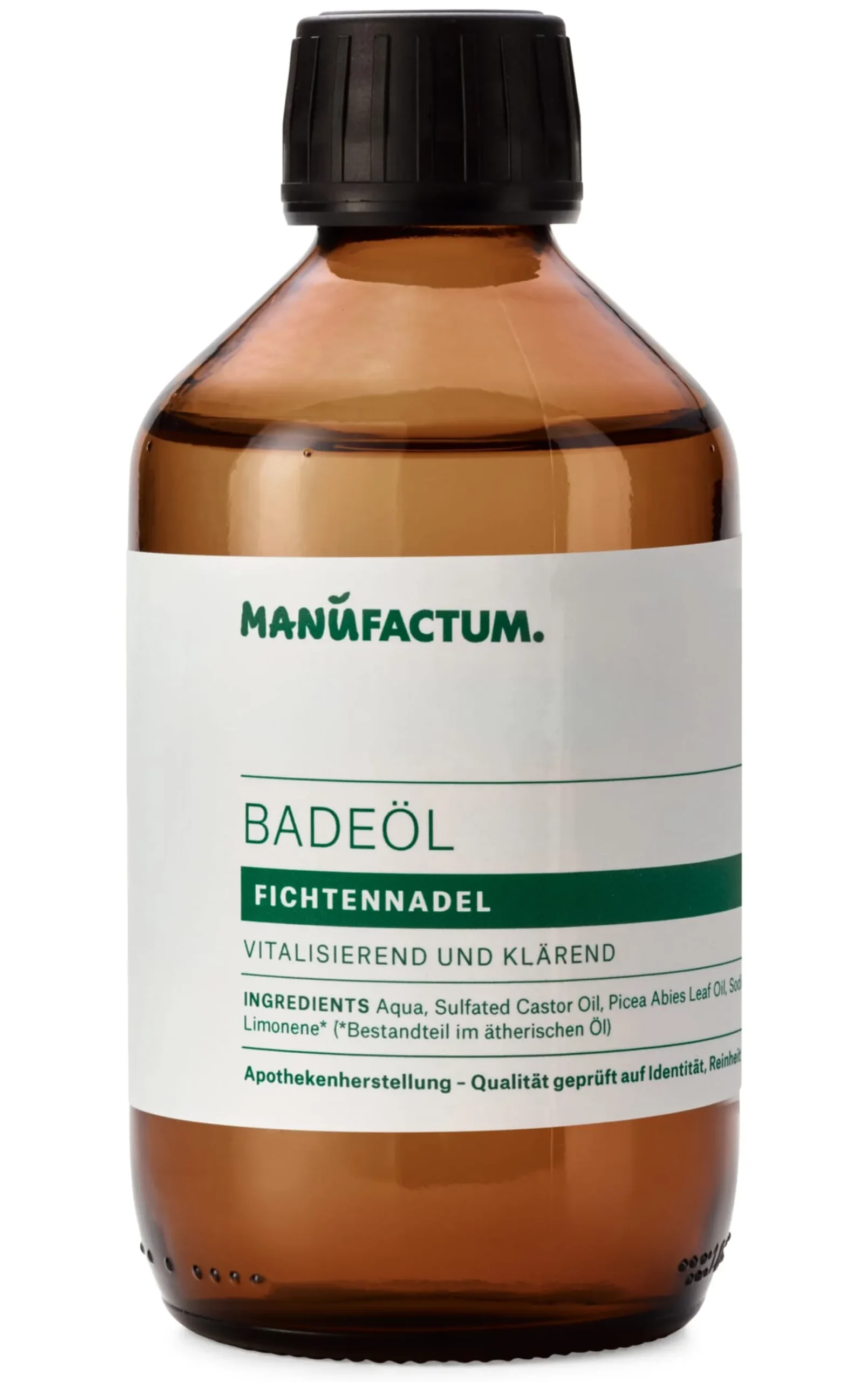 Ölbäder steigern das Wohlbefinden und pflegen die Haut. Schaumes bedarf es dazu nicht, weshalb wir auf das bewährte Türkischrotöl als Basis setzen. Unsere Badeöle schäumen zwar nicht, verbinden aber die reinigende Wirkung mit hautpflegenden und rückfettenden Eigenschaften. Für den ausgeprägten Duft sorgt ein rund zehnprozentiger Anteil naturreiner ätherischer Öle. Die Badeöle enthalten keinerlei Farbstoffe, weshalb das Lavendel-Badeöl auch nicht lila und das Fichtennadel- oder Rosmarin-Badeöl nicht grün ist.