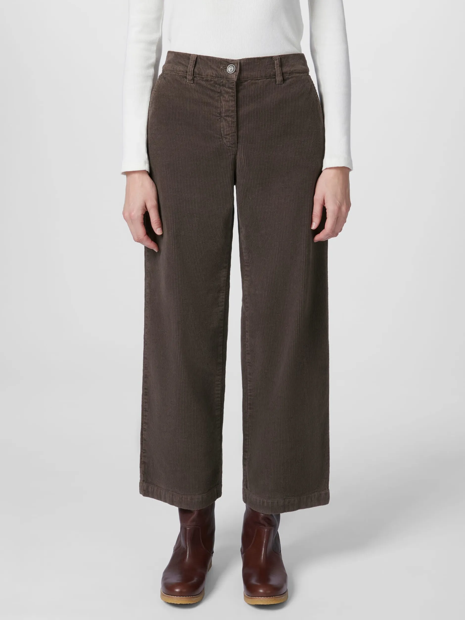 Mit seinen samtartigen Längsrippen hat Cord nicht nur eine markante Optik und Struktur, er ist auch sehr robust und langlebig. Diese Hose lassen wir aus einem mittelbreiten Cord aus hautsympathischer, kontrolliert biologisch angebauter Baumwolle konfektionieren. Hinzu kommt eine minimale Elastanbeimengung für mehr Elastizität und Formtreue. Das Cordgewebe ist vorgewaschen und bekommt so einen leichten Used Look, was zusammen mit der bequemen Passform mit geradem, weit geschnittenem Bein für einen lässigen Auftritt sorgt. Die Cordhose ist mit zwei Eingrifftaschen und zwei großen aufgesetzten Gesäßtaschen ausgestattet, sie wird mit Reißverschluss und Knopf geschlossen.