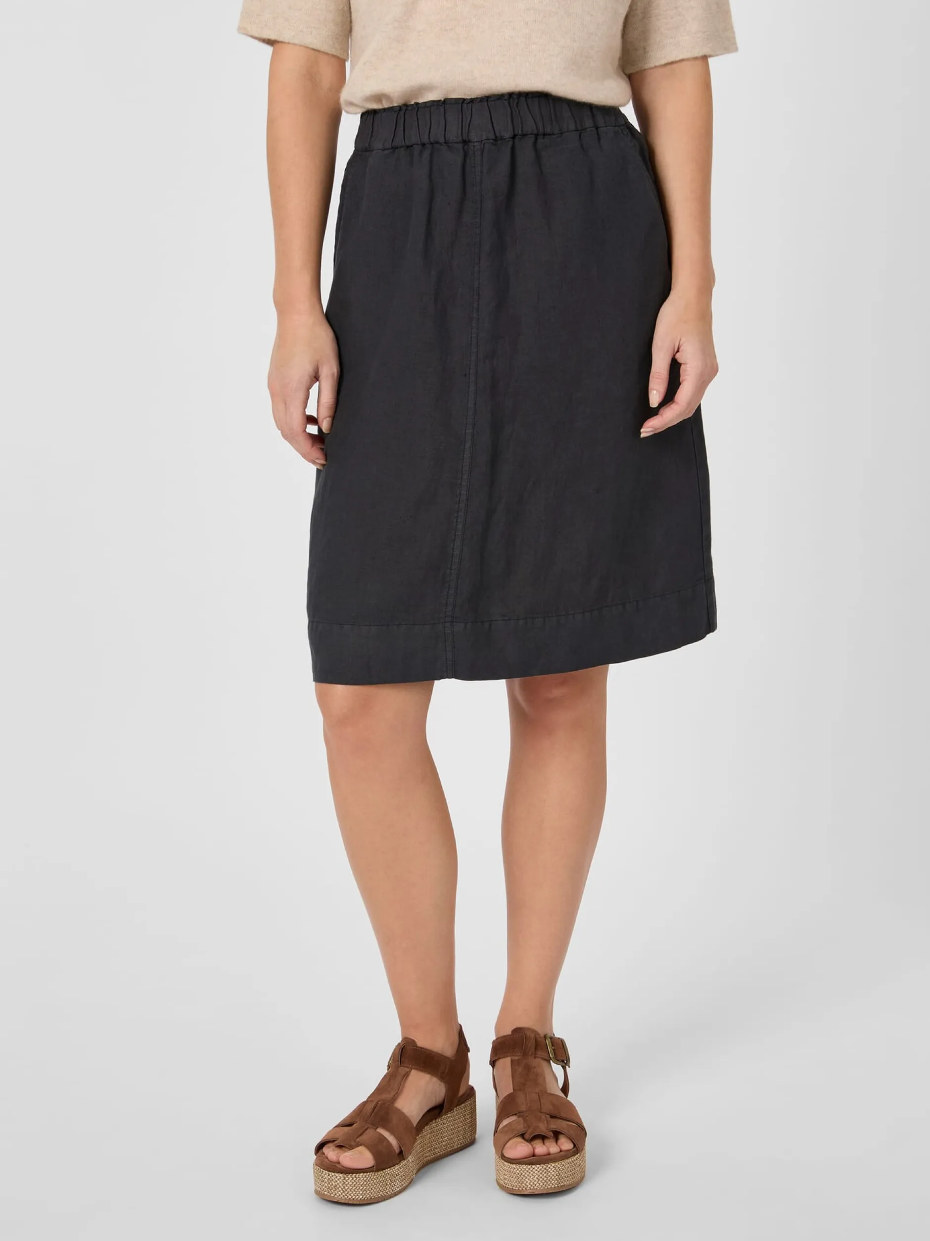 Diesen locker fallenden Midirock lassen wir aus einer feinen und zugleich strapazierbaren Popeline aus hautsympathischer, kontrolliert biologisch angebauter Baumwolle fertigen. Der dicht gewebte, leinwandbindige Stoff liegt angenehm glatt auf der Haut und zeigt einen zarten Glanz. Geschnitten ist der knielange Rock in leichter A-Linie. Der elastische Bund mit integriertem Tunnelzug ermöglicht eine individuelle Weitenregulierung und sorgt für einen guten und bequemen Sitz. Zwei in die Seitennaht eingesetzte Taschen bieten Platz für Kleinteile des täglichen Bedarfs. Dank seiner schlichten, puristischen Optik lässt sich der Rock vielseitig kombinieren – mit legeren wie eleganten Outfits.