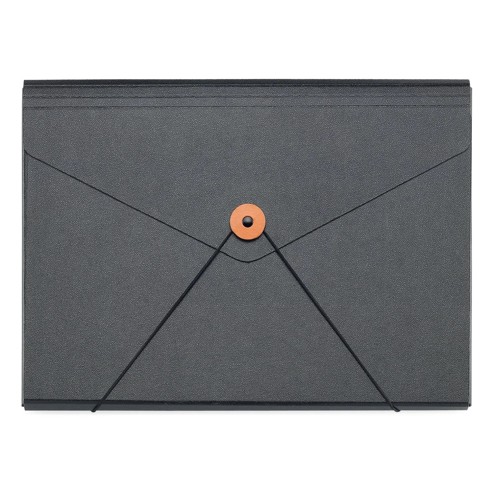 Vollständig aufklappbare Dokumentenmappe in Kuvertmanier. Für die Ablage und den Transport loser DIN-A4-Unterlagen.