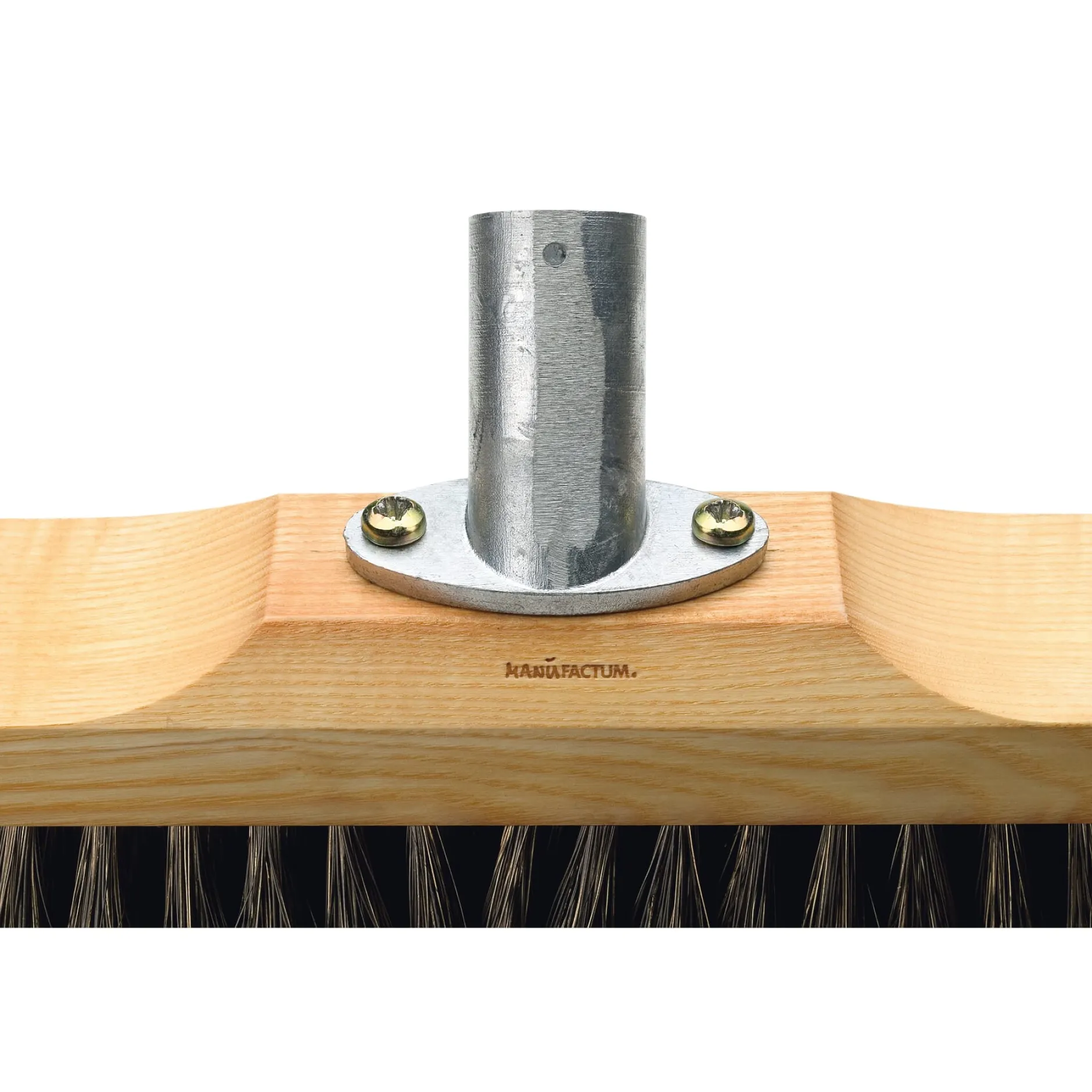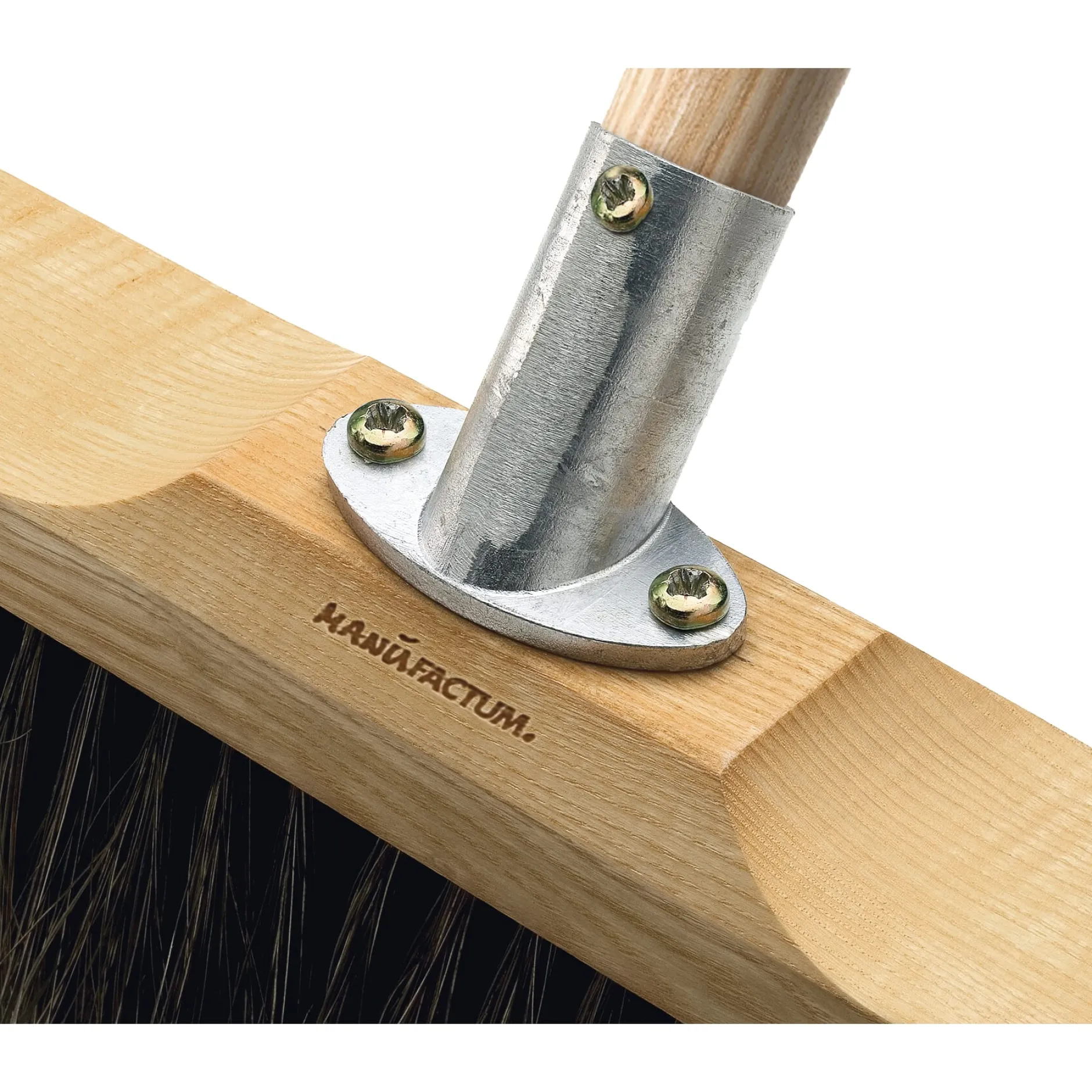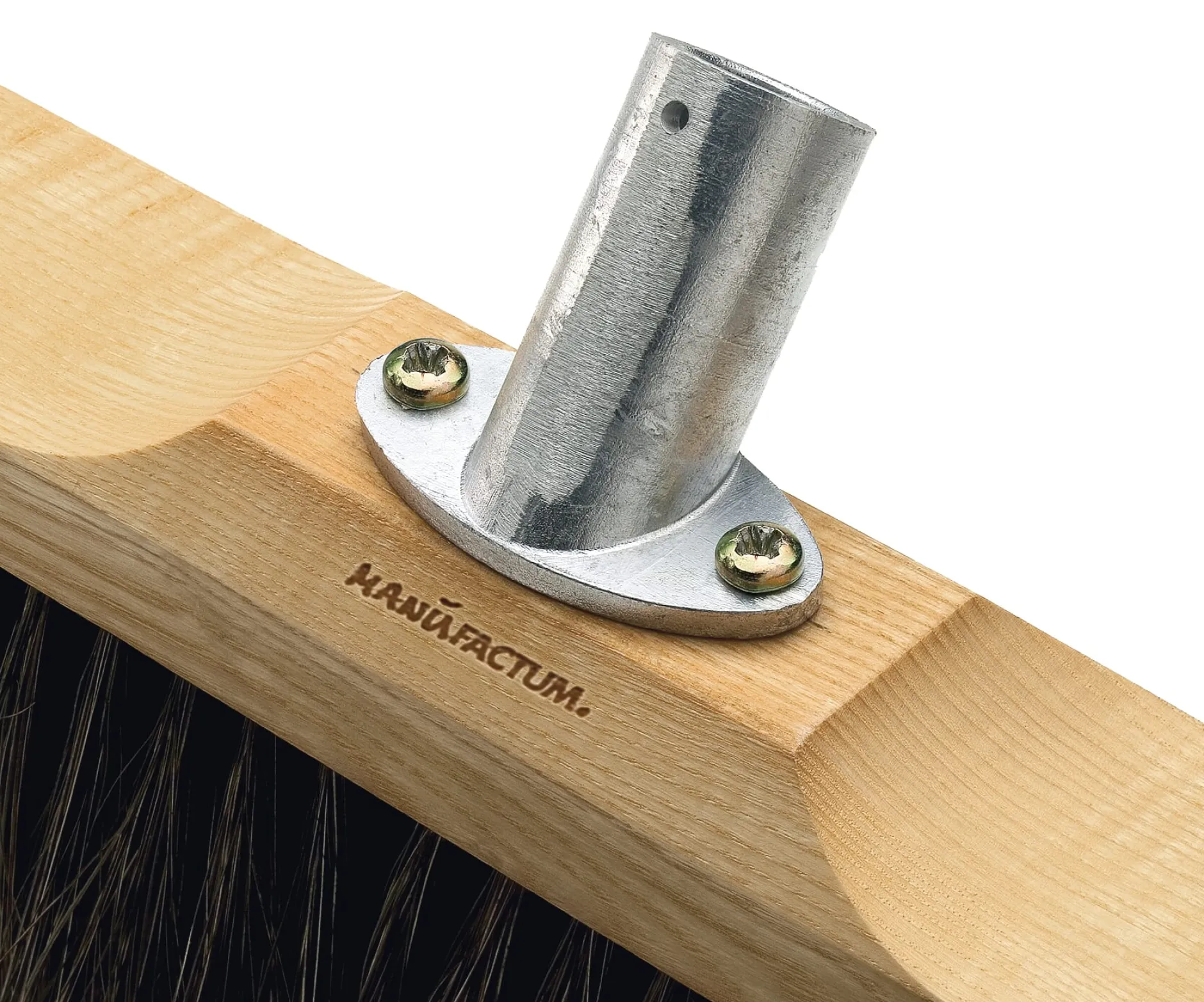 Eschenholzkörper, Besatz Arenga. Besenstielhalter aus Aluminiumguss.