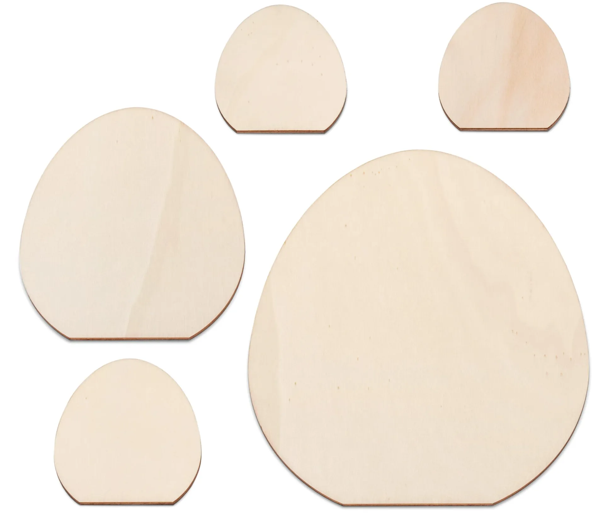 5 eiförmige Motive. Höhe 24/15,5/10/9 cm. Breite 19,5/12,5/8,5/7,5 cm. Tiefe 3 mm. Gesamtgewicht 96 g.
