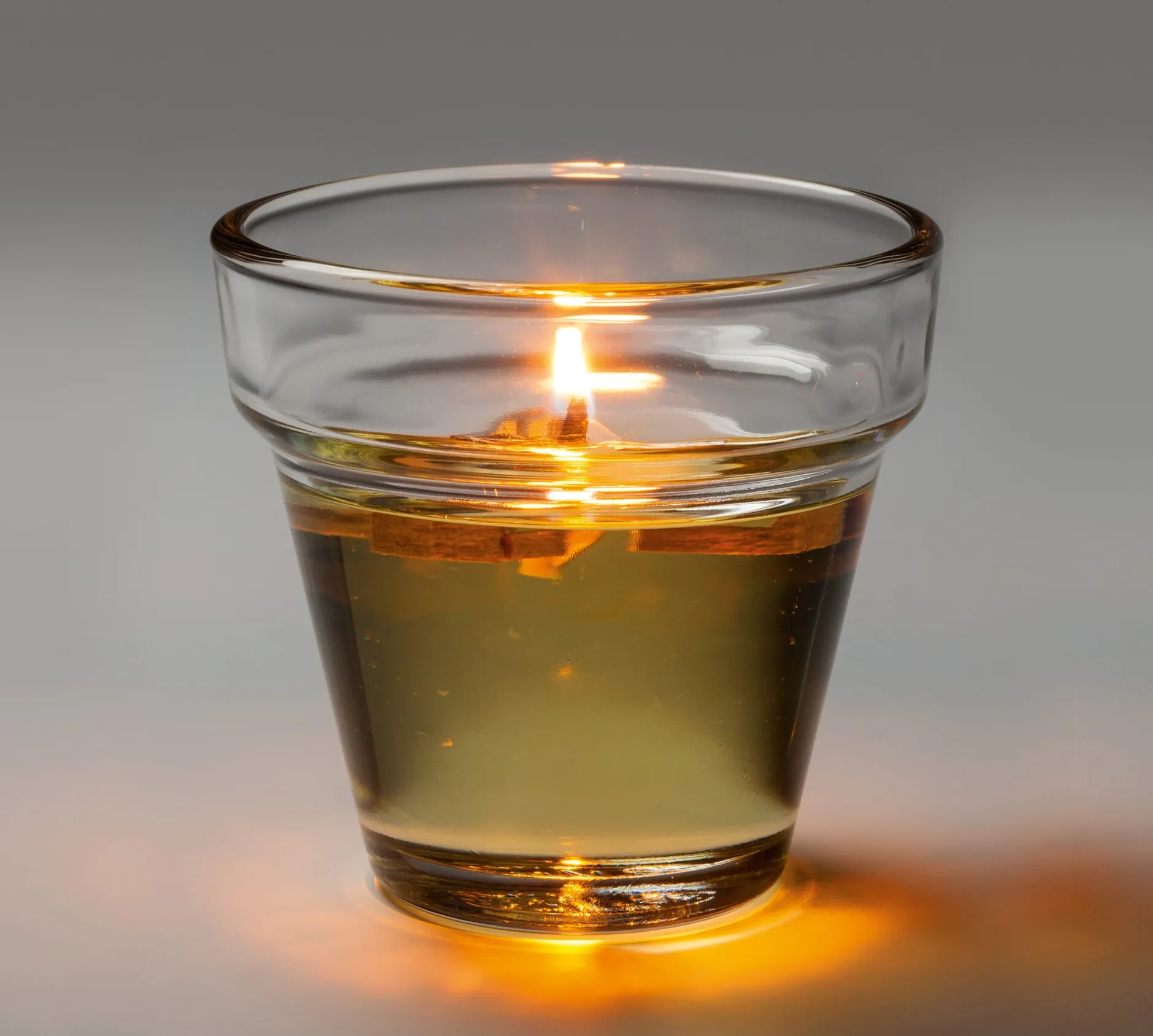Licht ist elementar: Schon die Schöpfung beginnt mit den Worten „Es werde Licht“, und das Zähmen des Feuers gilt als früheste Kulturleistung der Menschheit. Eine der ältesten künstlichen Lichtquellen ist das Öllicht, das sich nicht nur dank seines angenehmen Lichts bis in die Gegenwart erhalten hat. Populär ist es vor allem auch deshalb, weil es sich einfach – quasi mit Bordmitteln – herstellen lässt. Ein geeignetes Gefäß für das Öl findet sich in vielfältiger Form im häuslichen Bestand, denn letztlich eignet sich dafür jedes kleinere hitzebeständige Glas, das zudem nach dem Einsatz als Lichtgefäß (und anschließendem Abwasch) wieder seinem ursprünglichen Zweck in der Küche dienen kann. Ebenso vorhanden ist der Brennstoff in Form von Pflanzenöl. Dieses ist – anders als petroleumbasierte Lampenöle – nicht nur preiswert und ungiftig, es ist auch in der Handhabung denkbar ungefährlich, da es ohne zusätzlichen Docht nicht brennt. Selbst wenn also ein damit befeuertes Öllicht einmal umgestoßen wird, richtet es (abgesehen von einem Fettfleck) keinen Schaden an.
