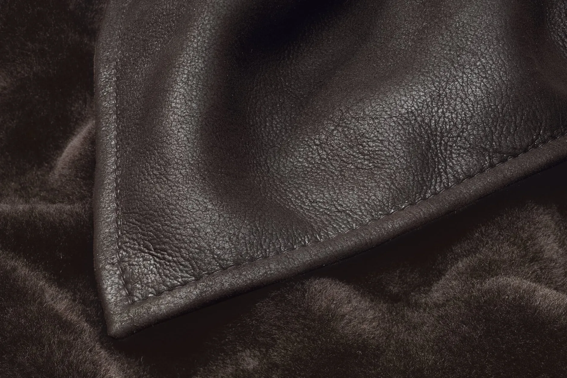 Aus je zehn Lammfellen spanischer Merinoschafe. Die spanischen Merinos haben eine durchaus starke, zugfeste Haut und gleichzeitig eine ausnehmend weiche Wolle. Das Lammfell kann daher wie gewachsen verarbeitet werden, was jeder einzelnen Decke einen besonderen Charakter verleiht. Das Fellvlies wird auf 10 bis 12 mm heruntergeschoren, denn die Unterwolle der spanischen Merinoschafe hat eine besonders dichte und seidige Struktur. So ist diese Lammfelldecke äußerst weich, anschmiegsam und wärmend. Wir lassen Sie in Nordrhein-Westfalen fertigen.