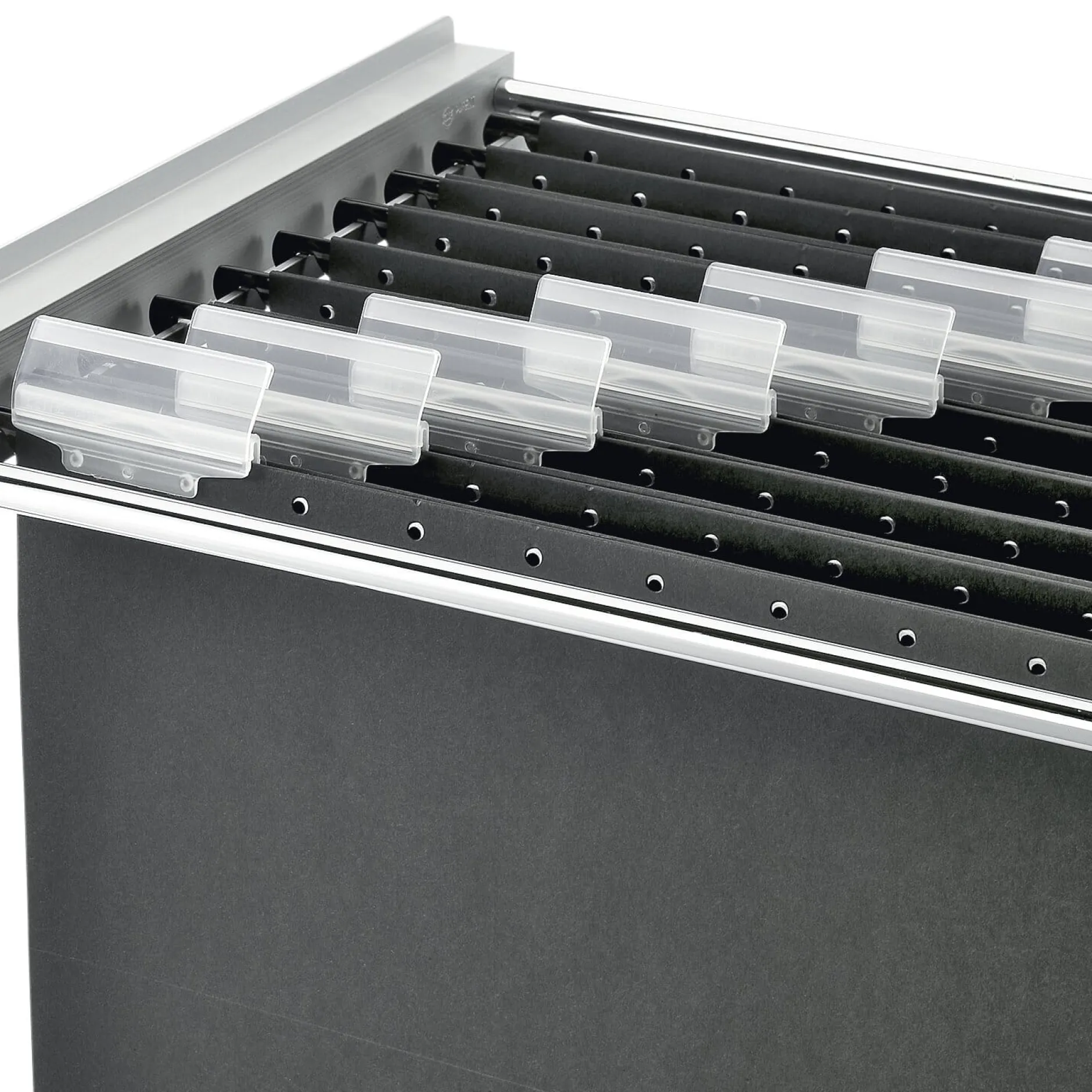 - Übersichtlich dank einrastender, verschiebbarer Vollsichtreiter
