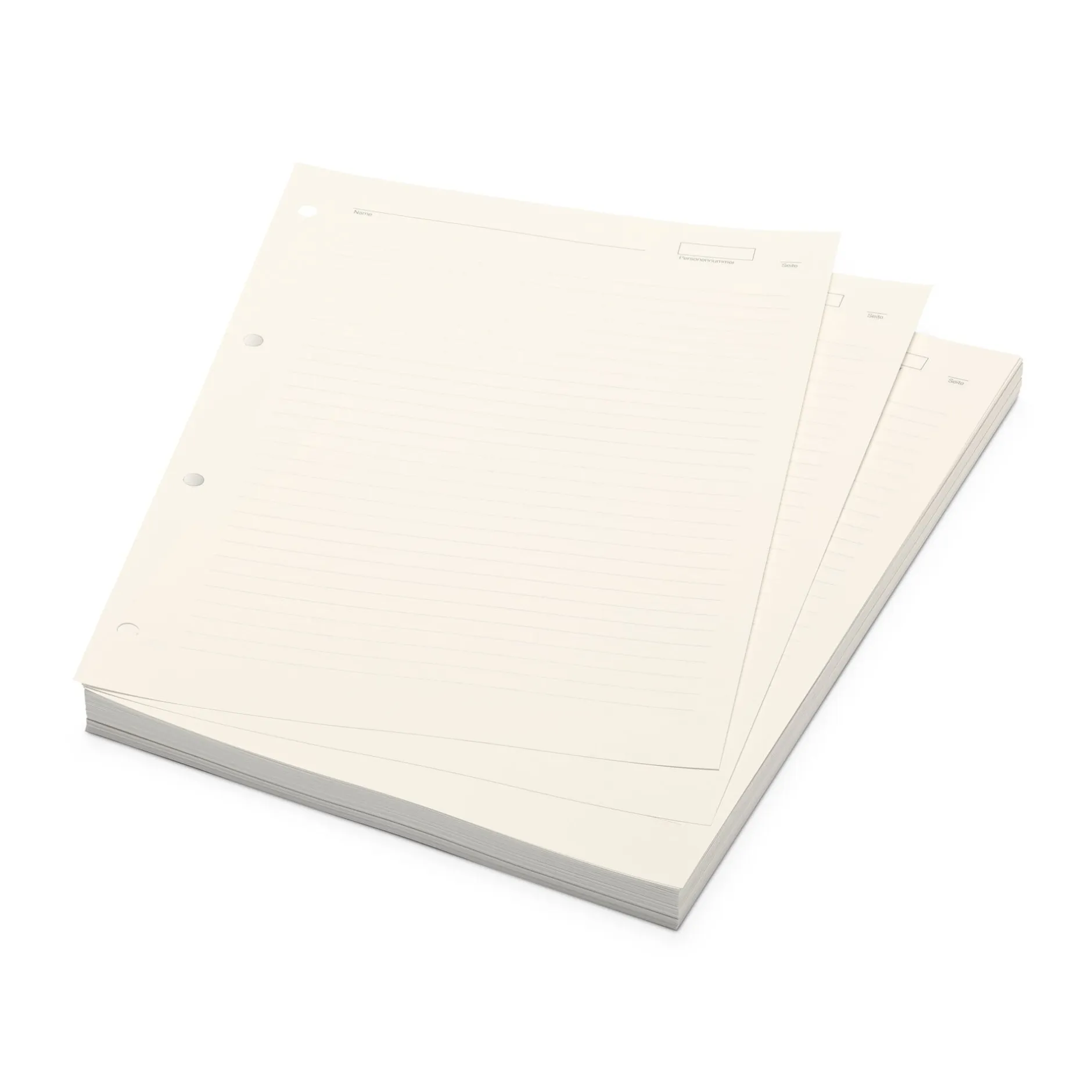 Linierte Personen-Folgeblätter, DIN A4. Cremefarbenes 100-g-Papier.