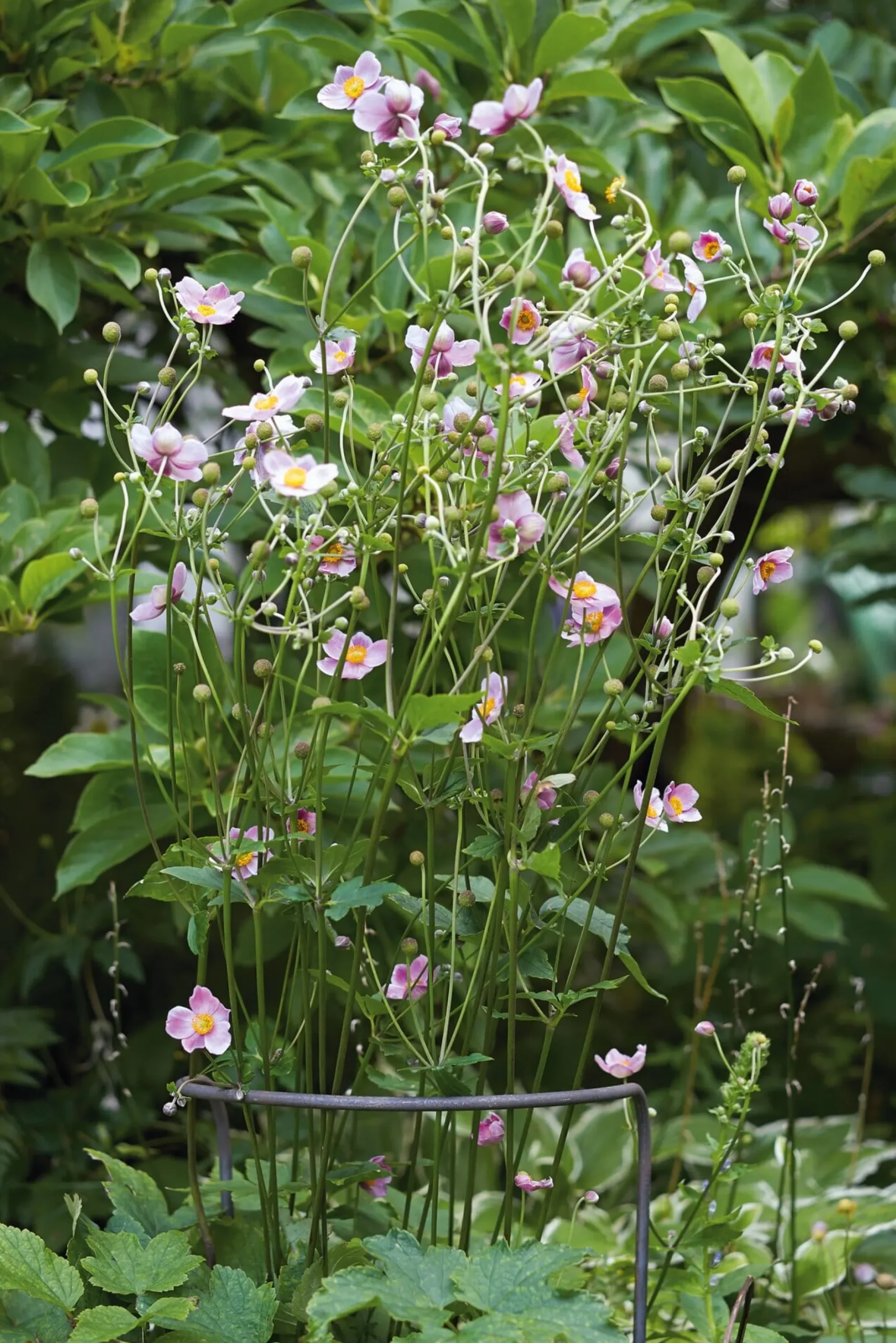 Diese stabilen, aus dickem Stahldraht (Ø 1 cm) gebogenen Pflanzenstützen geben Dahlien, großen Stauden oder unter ihrer Last zusammenzubrechen drohenden Beerensträuchern sicheren Halt. Einzeln gestellt sind sie an Häuserwänden oder am Wegesrand nützlich, zwei zusammen umschließen eine Pflanze als Stützring. Das Material ist unbehandelt, der drohenden Korrosion können Sie mit einem Leinöl- oder Owatrolanstrich vorbeugen.