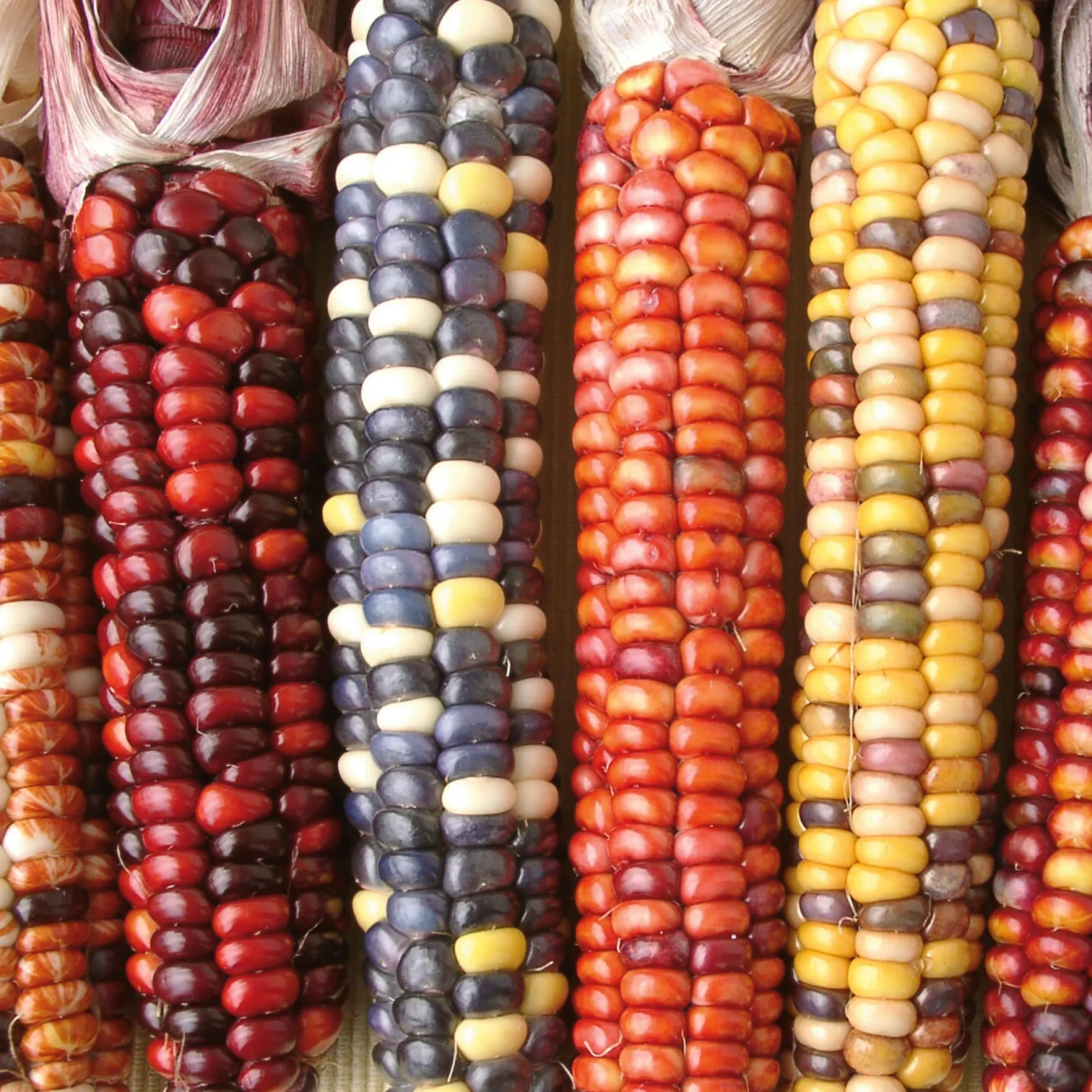 Mais wird in Amerika seit 2.500 Jahren angebaut und war lange eines der wichtigsten Nahrungsmittel der indigenen Völker. Diese Sorte mit den bunten Körnern geht auf eine traditionelle Sorte zurück. Sie reift früh und gedeiht auch bei schlechterem Wetter. Die jungen Kolben können als Gemüsemais gegrillt werden.