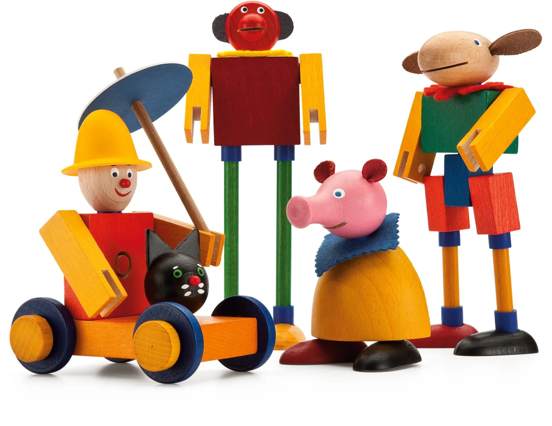 In dieser einzigartigen Zusammenstellung sind die bunten, in zahllosen Variationen kombinierbaren Steckfiguren nur bei Manufactum erhältlich. Insbesondere das rosafarbene Schweinchen ist ein zusätzlicher Glücksbringer, der eigens von uns entwickelt wurde; der Hersteller hat dem Figurensatz außerdem eine Seilbahngondel hinzugefügt.