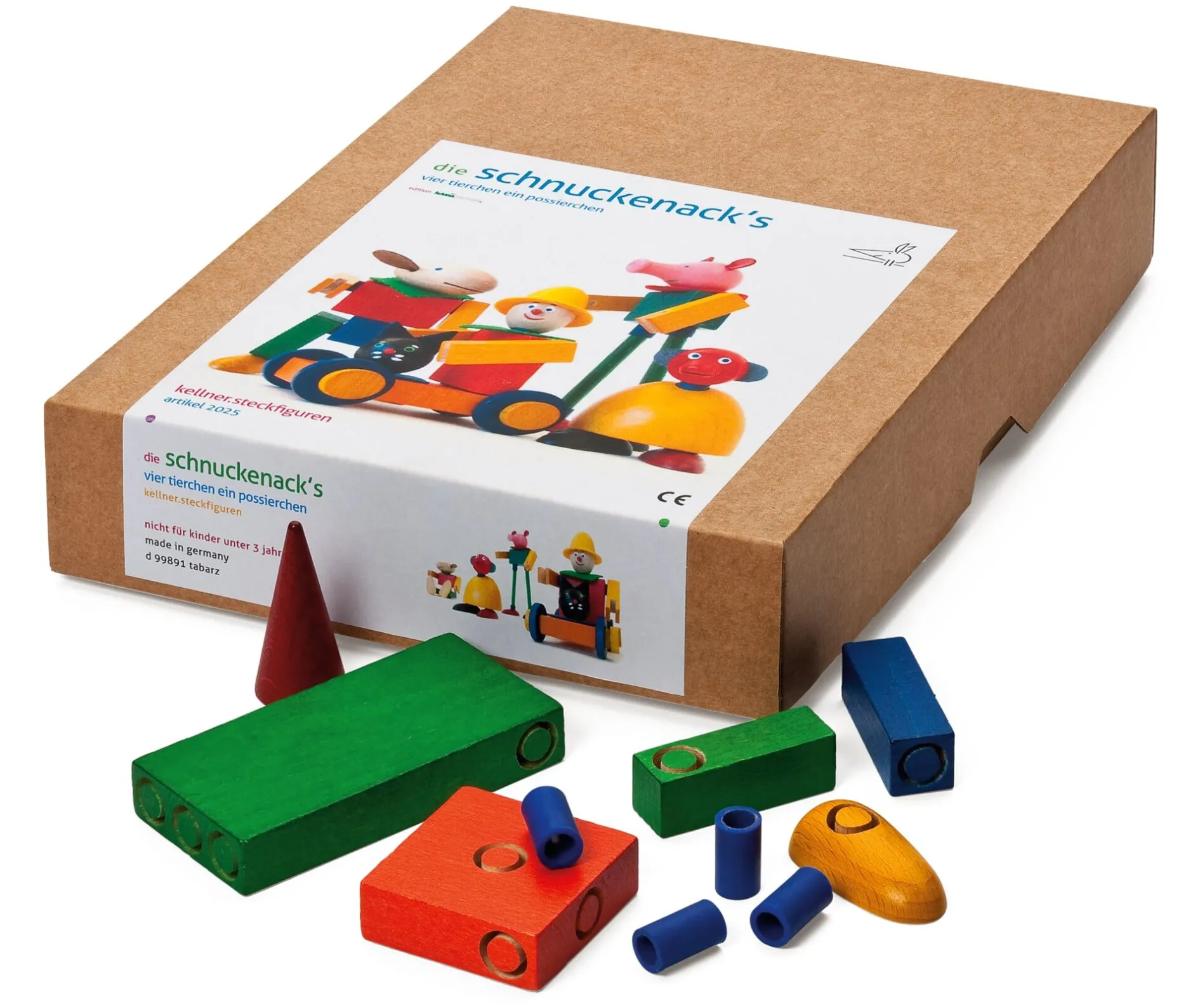 Die Schnuckenacks-Steckfiguren gehen auf Georg Kellner zurück, einen jungen Klavierbauer, der 1914 in Leipzig seiner Passion folgte und mit dem Bau flugfähiger Flugzeugmodelle begann, denen Schiffsmodelle folgten, angetrieben durch Federantrieb, Elektromotor oder Dampfmaschine. Nach dem Ersten Weltkrieg begann er, Bausätze anzubieten, die bald als Werk-, Bastel- und Anschauungsmaterial im Schulunterricht Verbreitung fanden. 1930 entwickelte Kellner das von ihm patentierte System aus Bauklötzen unterschiedlicher Farben und Formen, die sich mittels elastischer Verbindungsstücke zu den verschiedensten Figuren, Fabelwesen, Tieren, Fahrzeugen oder Seilbahnen zusammenstecken ließen. Die Kellner Steckfiguren waren geboren. Nach dem Zweiten Weltkrieg zog das Unternehmen nach Tabarz im Thüringer Wald um. Im Sozialismus dann wurden die Holzbestandteile der Kästen durch solche aus Kunststoff ersetzt und hunderttausendfach in Serie produziert. Der 1972 in Volkseigentum überführte Betrieb musste 1989 die Produktion einstellen. Gleichzeitig gründete jedoch Hans Georg Kellner in Berlin eine Werkstatt für Holzgestaltung, kaufte 1992 den verstaatlichten ehemaligen Familienbesitz in Tabarz zurück und legte die berühmten Steckfiguren neu auf – wie früher aus Holz, ergänzt durch Leder und bunten Filz.