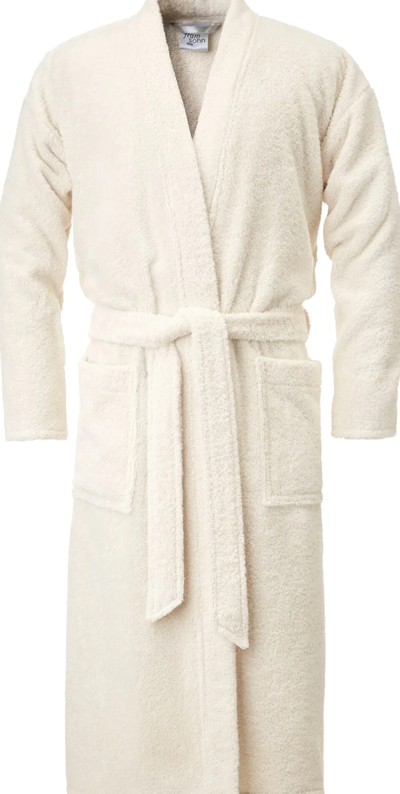 Aus einem schwergewichtigen Doppelfrottier mit gleichwertigen Innen- und Außenseiten konfektioniert Framsohn diesen Bademantel mit einem Bindegürtel aus Oberstoff und zwei aufgesetzten Taschen. Man sieht ihm schon auf dem Foto an, wie bequem und kuschlig er ist. Die verwendete Baumwolle stammt aus kontrolliert biologischem Anbau.
