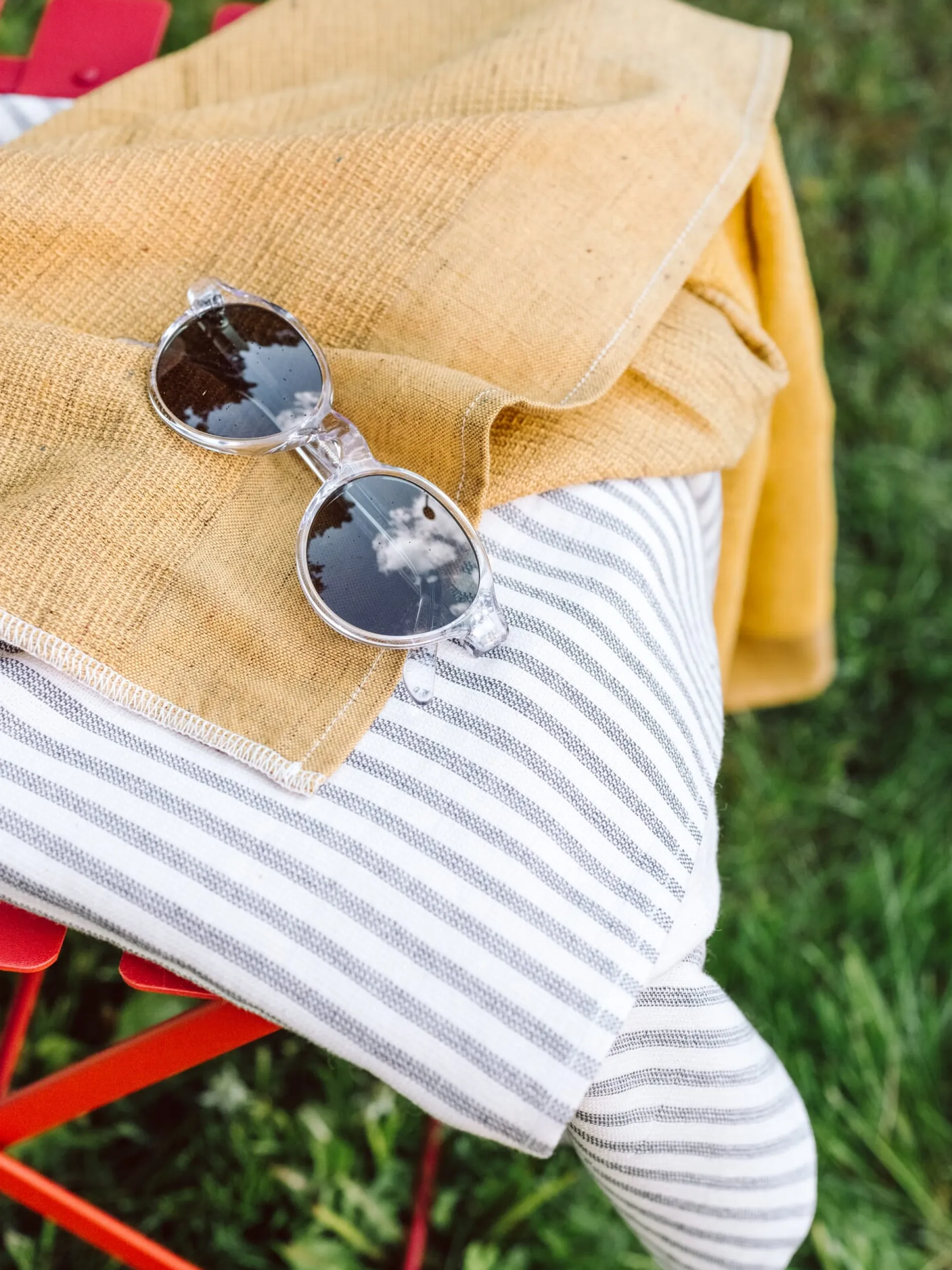Optisch nimmt sich das klare, von Modellen der 1980er Jahre inspirierte Azetatgestell dieser Sonnenbrille deutlich zurück. Ins Auge fallen vielmehr die ins Grünliche gehenden Kunststoffgläser der Kategorie 3. Durch ihren starken Tönungsgrad schützen sie in fast allen Situationen vor Blendung, selbst auf Wasseroberflächen, am Strand oder in den Bergen.