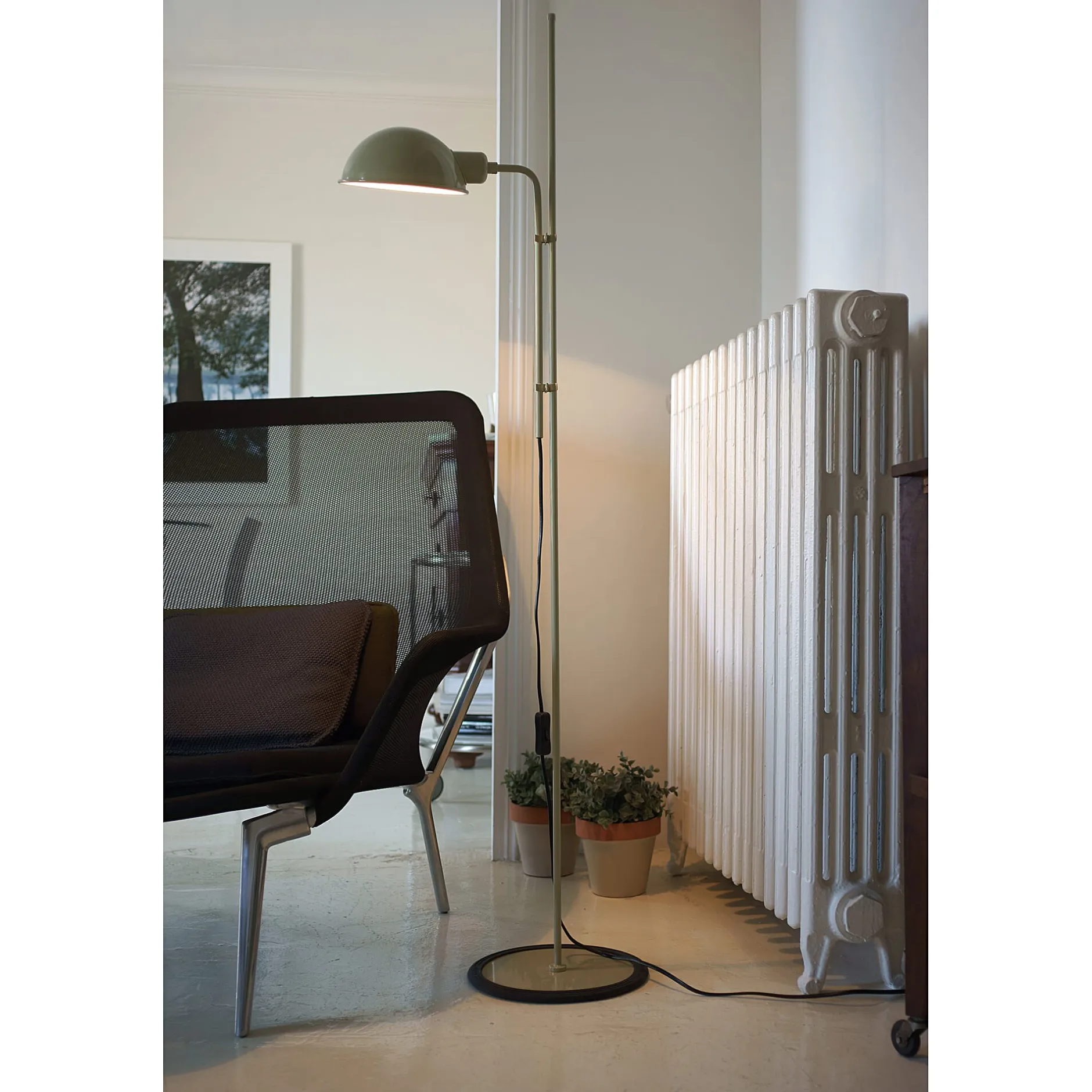 Stehleuchte in klassischer industrieller Form. Zum Einsatz am Leseplatz, neben dem Sofa oder dem Schreibtisch, höhenverstellbar und mit seitlich drehbarem Schirm zur Abblendung. Kabel: L 215 cm, Eurostecker. Fassung: E27. Leuchtmittel im Lieferumfang nicht enthalten. Leistungsaufnahme: max. 53 W.