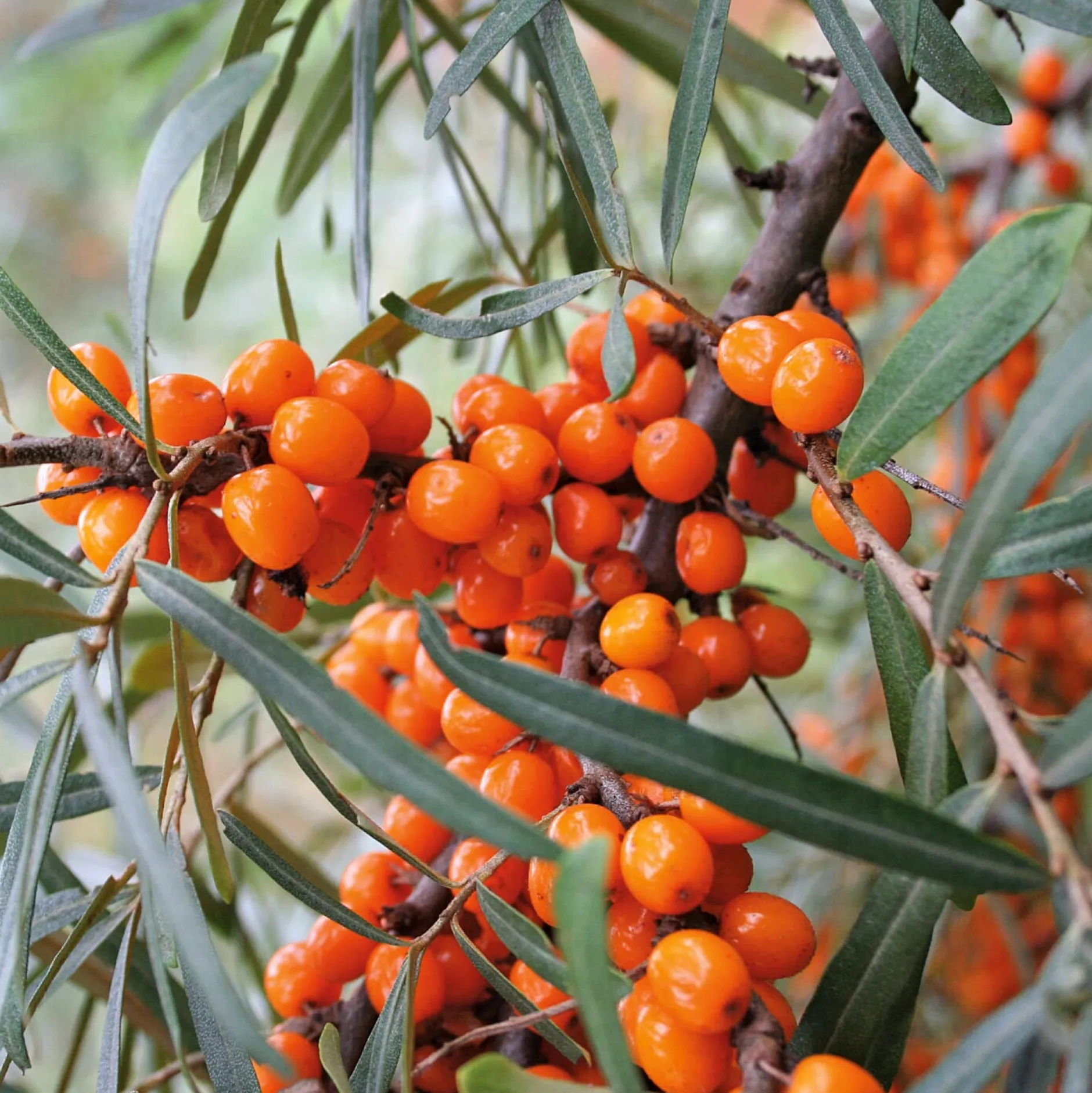 Die orangeroten Beeren reifen ab August und lassen sich zu Marmelade, Gelee und Saft verarbeiten. Mit einem sehr hohen Vitamin-C-Gehalt sind sie so gesund wie delikat.
