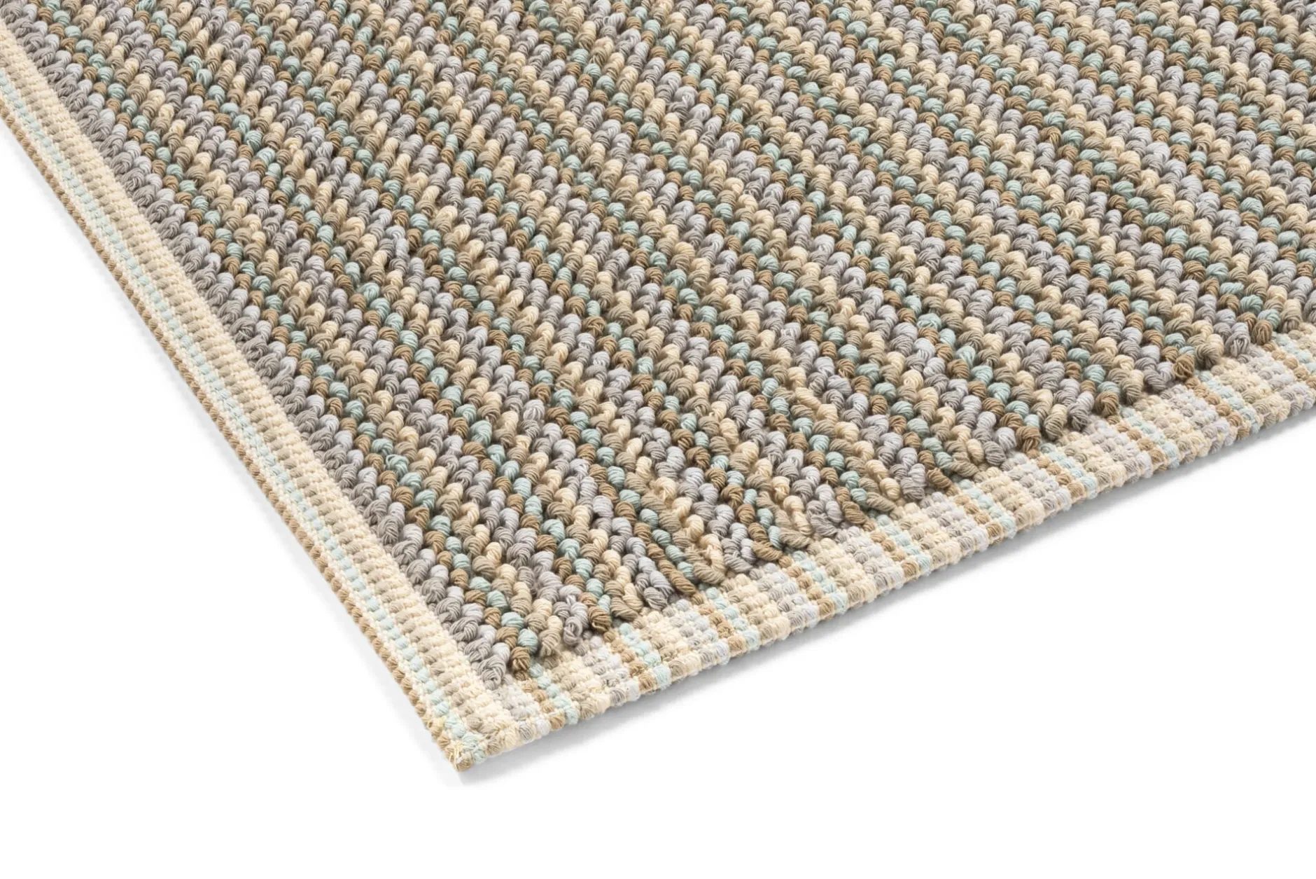 Dieser Bad- und Duschvorleger kommt aus Sardinien und ist in verschiedener Hinsicht ungewöhnlich: zum einen wegen seiner (tritt-)festen, voluminösen und dichten Struktur, und zum anderen wegen der besonderen Herstellungsweise. Die Badematte wird mit drei Fadensystemen in einem Verfahren gewebt, das der für Samt verwendeten Epinglé-Technik ähnlich ist – aus einem Vierfachzwirn in der Grundkette, einer aus 18 gezwirnten Garnen bestehenden Schlinge und einem besonders starken Achtfachzwirn im Schuss. Traditionell ist dies ein Verfahren für das Weben fester Wollteppiche, hier wird es auch – unter Rückgriff auf Baumwolle statt Wolle – für die Fertigung dieser Badematte angewandt, die sich dessen ungeachtet aber auch als Bettvorleger für das Schlafzimmer empfiehlt.