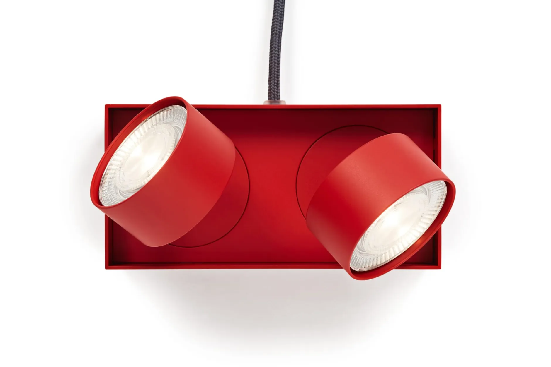 Hier wird der Decken- und Wandaufbaustrahler zur aufstellbaren Einzelleuchte. Der Strahlertyp DRUFF leistet überall dort seinen Dienst, wo von unten wirkende Akzentbeleuchtung gewünscht ist, oder einfach dort, wo die Stromzufuhr nicht über Wand- oder Deckenauslässe gewährleistet ist. DRUFF steht auf dem Boden, oben auf dem Sideboard oder im Regal. Aufwendiges Gehäuse, schön gefertigt, ohne sichtbare Schrauben und Kabel. Die um 365 Grad drehbaren und 90 Grad zu schwenkenden Strahlerköpfe sitzen leicht versenkt auf dem rechteckigen Gehäuse auf. Mit einem Griff lässt sich der gesamte Lichtkopf dank eines patentierten Bajonetts zur Wartung vom Gehäuse lösen. Der Lichtaustrittswinkel der Leuchtmittel liegt bei 12 Grad und erzeugt damit ein punktuelles Licht. Im Lieferumfang enthalten sind zwei Aufsatzlinsen, deren Einsatz einen Lichtausfall von 38 Grad erzeugt und die somit breit abstrahlen. Kabel: L 230 cm, Schutzkontaktstecker (Typ F) . Die Leuchte enthält LED-Lampen. Lichtstrom: 1.100 lm, Farbtemperatur: 2.700 K, Farbwiedergabe (CRI > 90), Nennleistung: 2 x 12,7 W. Tauschbare Wechseloptiken mit 12° und 38° Abstrahlwinkel.