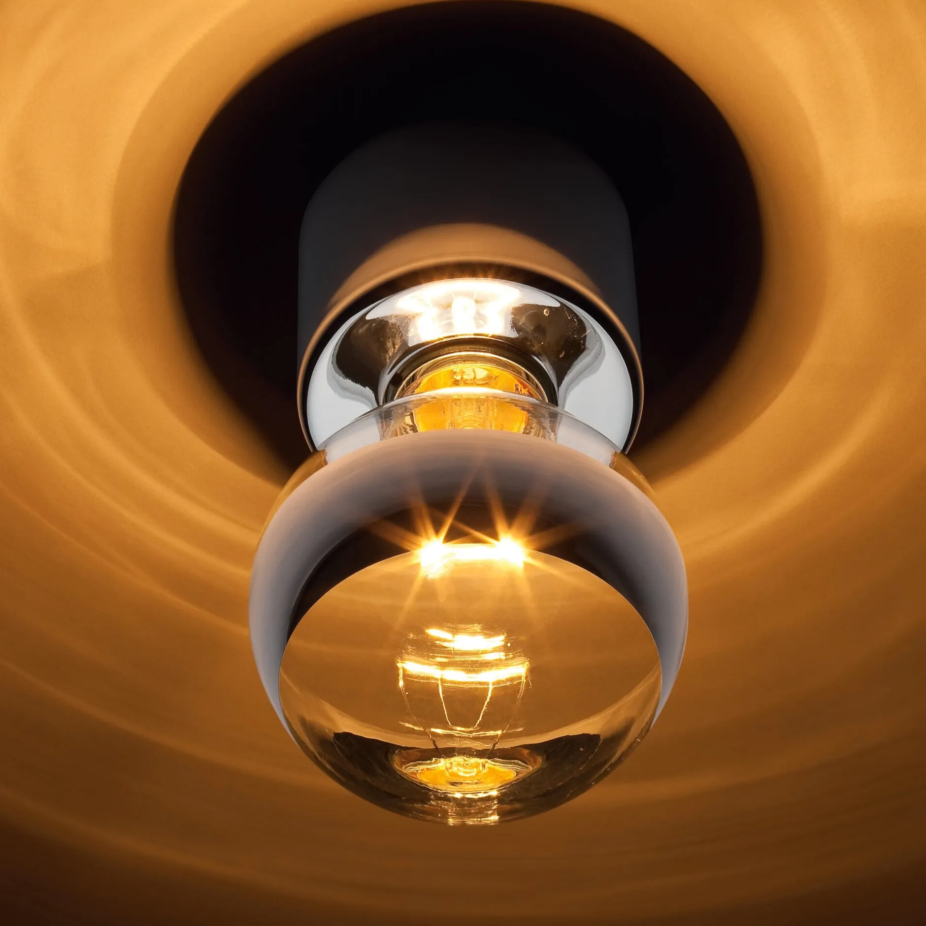 Korpus aus Stahl. Höhe 6 cm, Ø 8 cm. Gewicht 250 g. Metallfassung E27 (max. 60 W). Lieferung ohne Leuchtmittel.