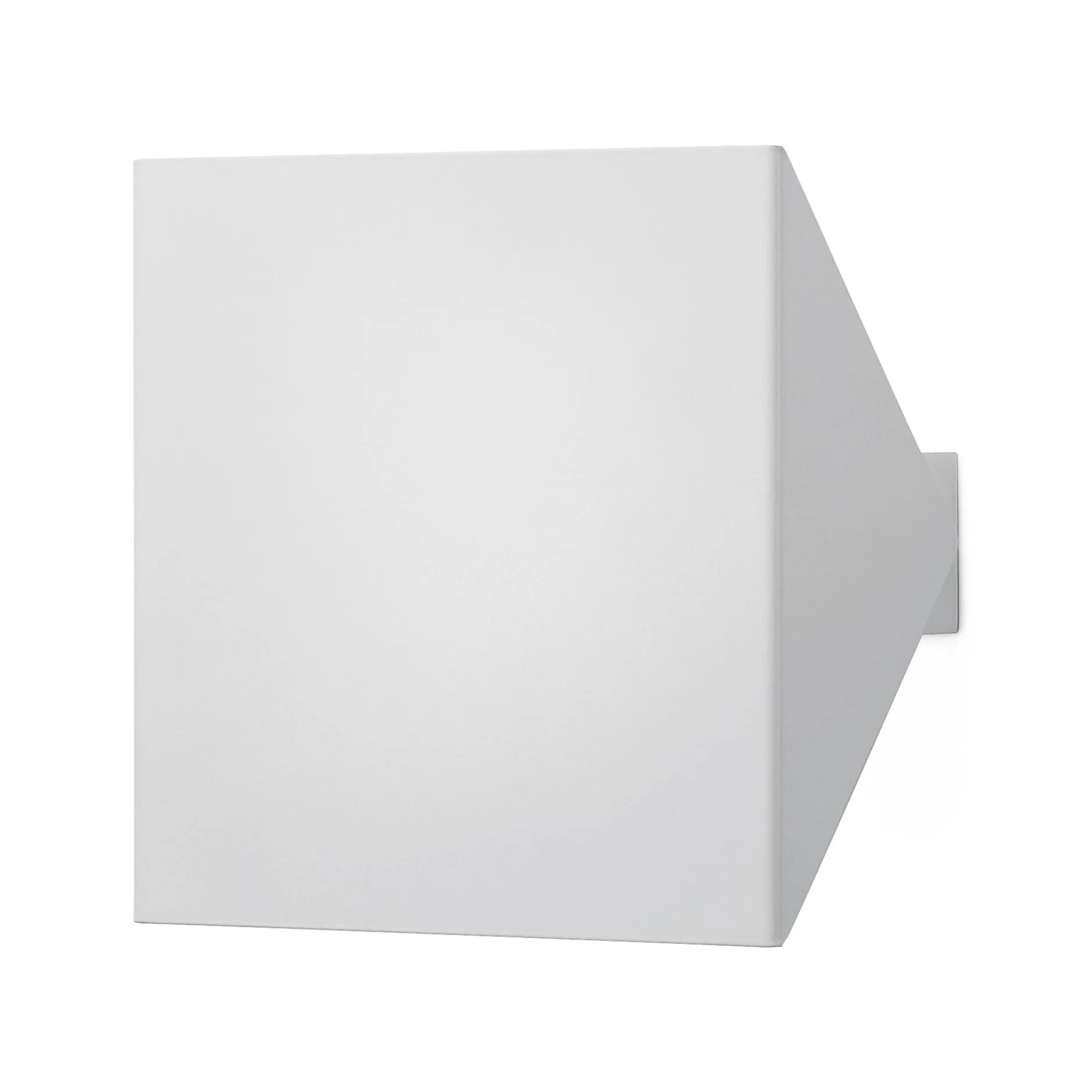 Klein: Schirm Stahl, weiß pulverbeschichtet, 17 x 17 cm. Tiefe 7 cm. Gewicht 620 g. 1 Fassung E 14 (max. 40 W).