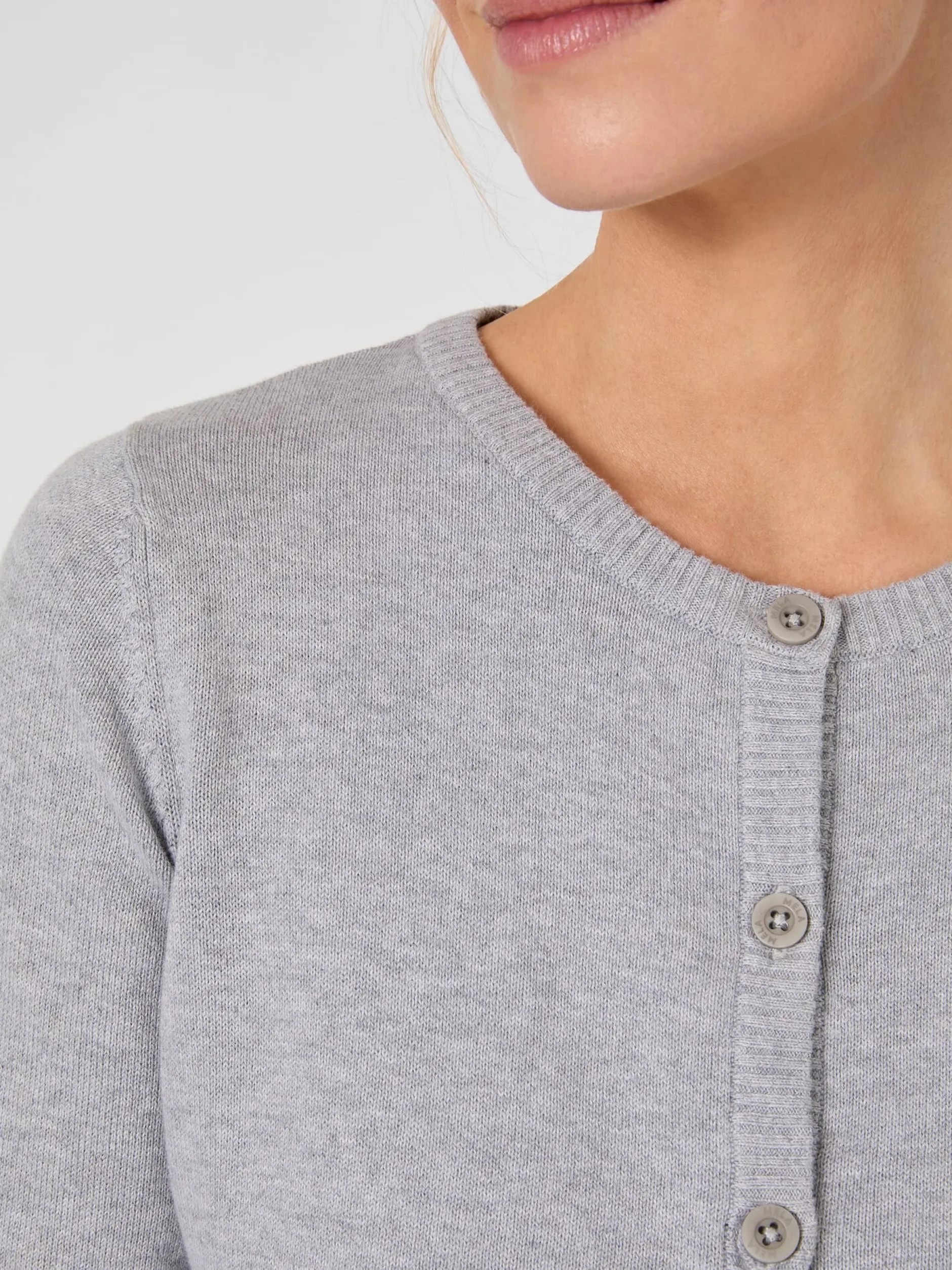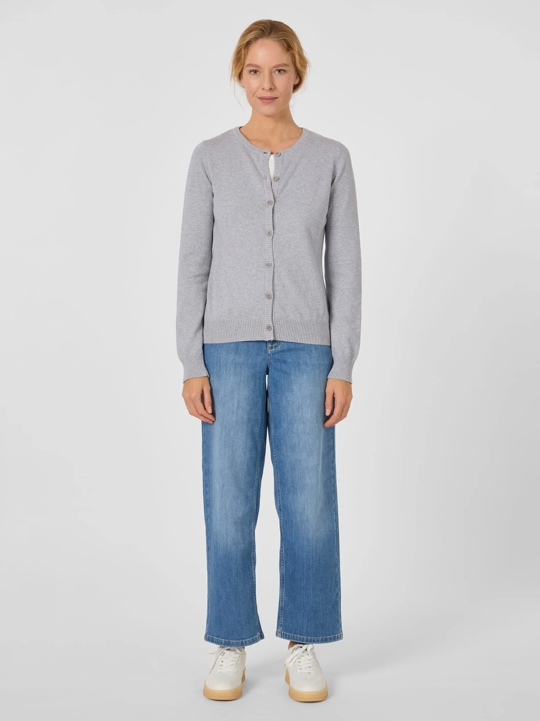 Zeitlos klassisch ist dieser Cardigan und dank des verwendeten Materials ein guter Begleiter für die Übergangszeit oder kühle Sommerabende. Das feine Gestrick besteht aus reiner, kontrolliert biologisch angebauter Baumwolle, was es hautsympathisch und atmungsaktiv macht. Gearbeitet ist der Cardigan in hüftlanger, gerader Passform, mit Rippenstrickpartien an Hals, Ärmeln, Knopfleiste und Rumpf. Farblich passende Steinnussknöpfe runden das Design ab.