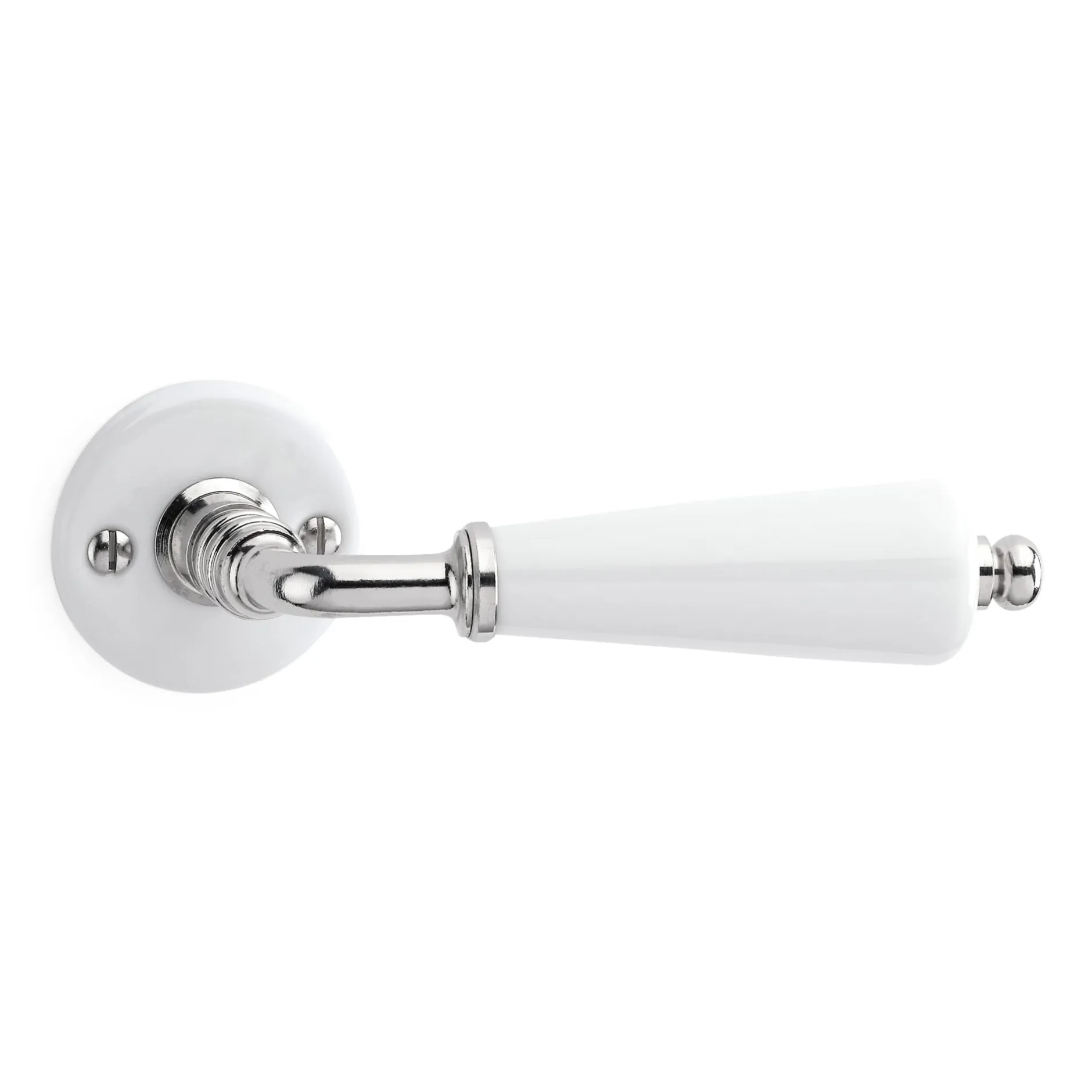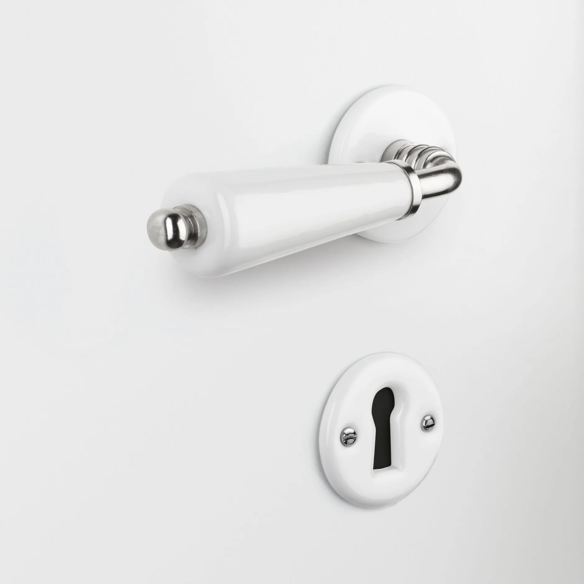 - Klassische Kombination: Porzellan und vernickeltes Messing
