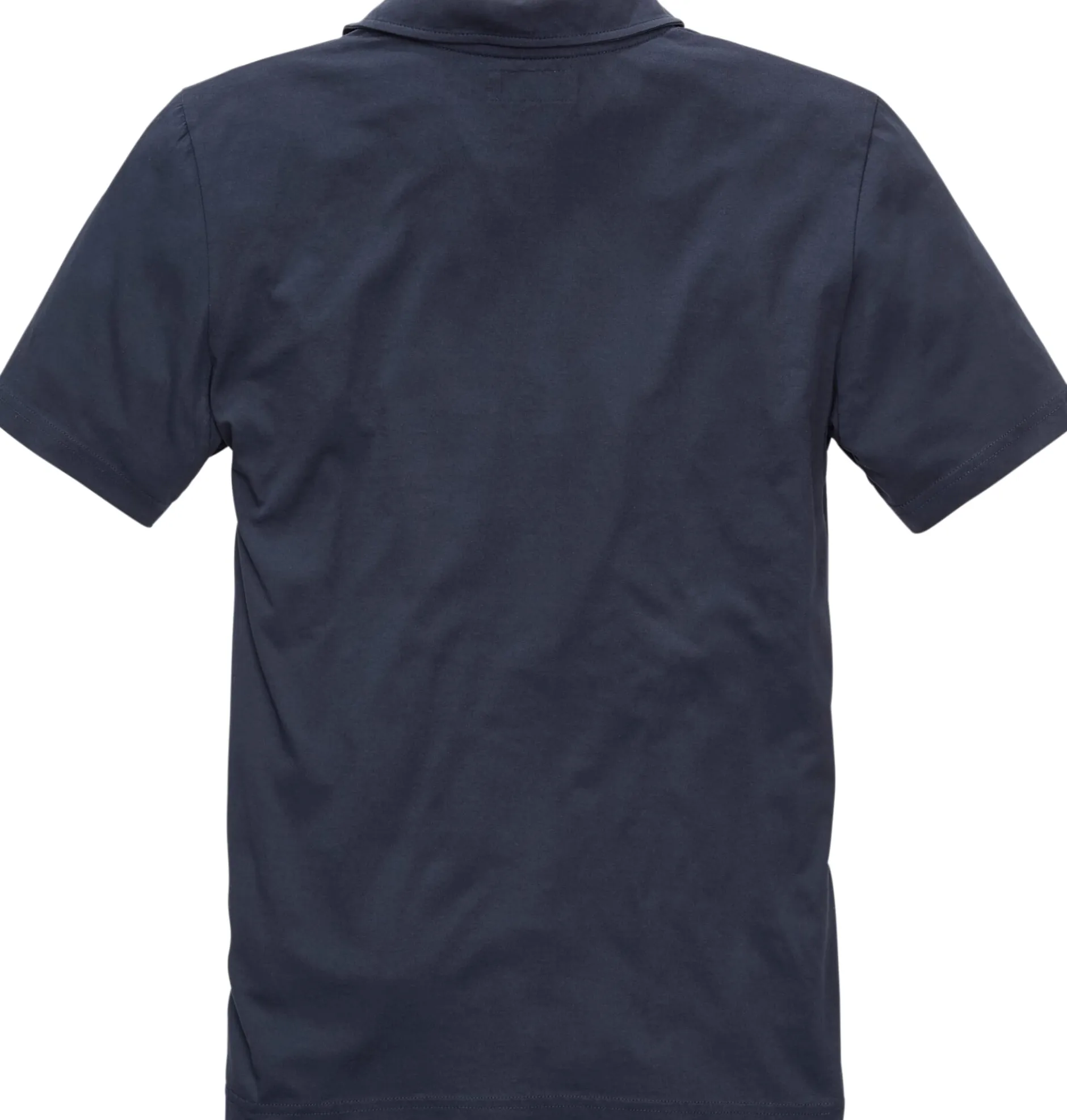 Ein rundgestricktes Poloshirt der rustikaleren Art: stückgefärbt, vorgewaschen, mit Dreieckseinsätzen unter den Armen und einem Steinnussknopf mit Schlaufe. Das Material besteht aus kontrolliert biologisch angebauter Baumwolle.