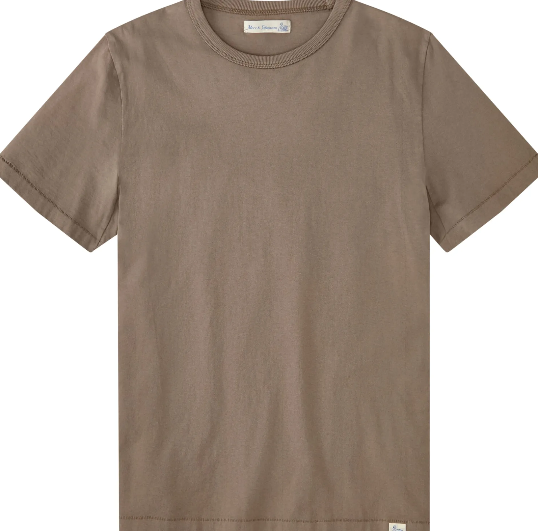 Seit 1911 hatte es die Trikotagenfabrik Merz b. Schwanen auf der Schwäbischen Alb, die einst eine traditionelle Textilregion war, gegeben. In jüngerer Vergangenheit hat der Berliner Peter Plotnicki die Tradition der Firma wiederbelebt. Er lässt wieder Shirts, Sporthosen und Wirkwaren fertigen – in Portugal und teils auch immer noch auf der Alb. Die Maschinen dort sind Original-Rundwirkmaschinen aus den Jahren 1920 bis 1960. Sie laufen sehr langsam und ermöglichen so erst die hohe Dichte, die charakteristische Struktur, den kernigen Griff sowie die Formtreue der Produkte. Ein kleines, aber bemerkenswertes Detail: Die Etiketten mit dem Originalschriftzug der Firma Merz b. Schwanen entstehen auf einem alten Jacquard-Bandwebstuhl.
