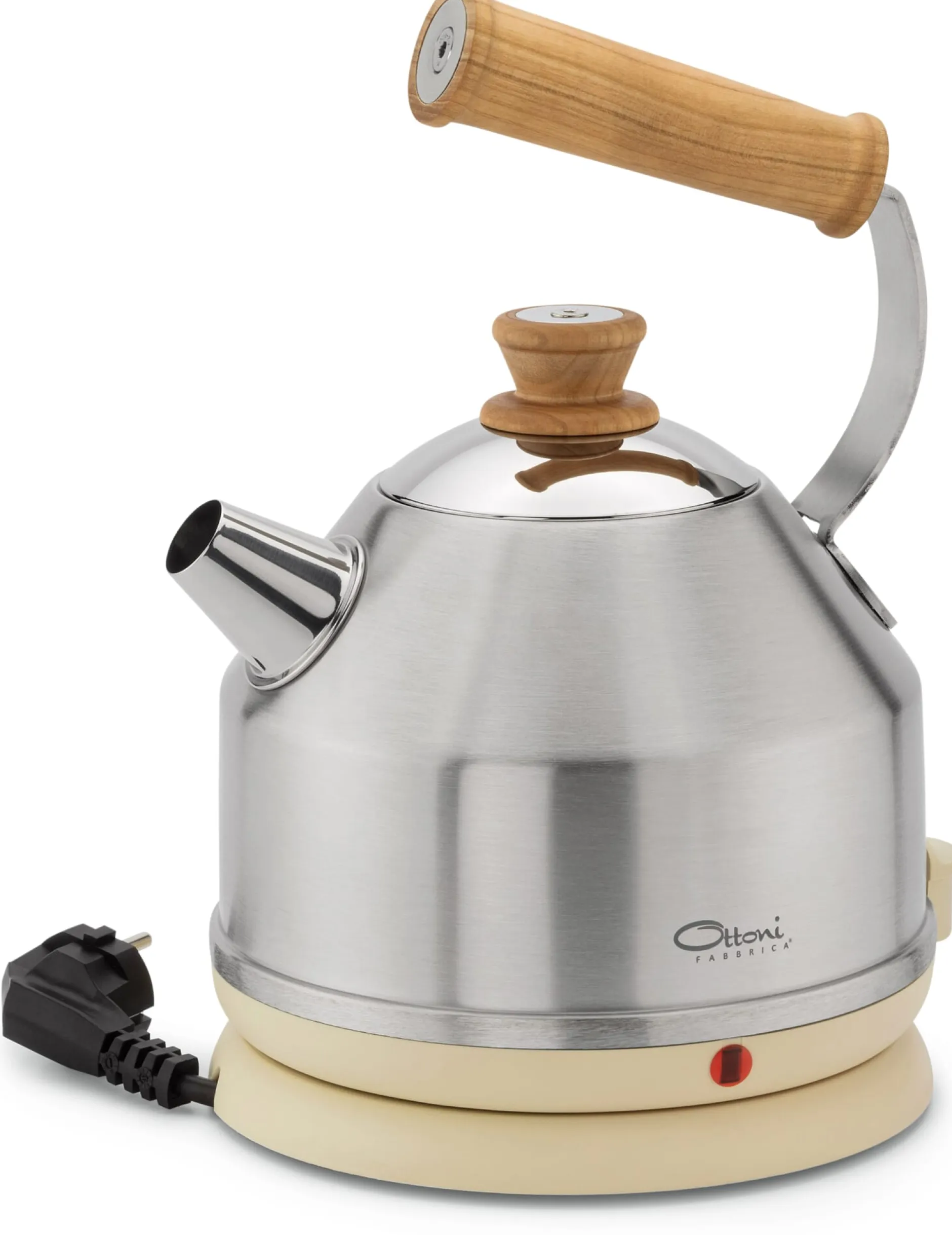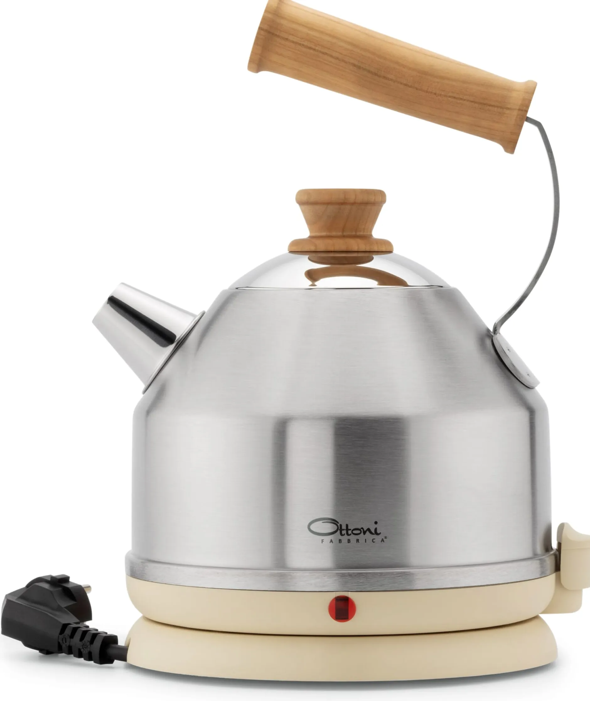 So stylish kann ein Wasserkocher aussehen. Dieser kommt vom Boden bis zur Schnaupe aus Italien. Der Kessel selbst besteht ganz aus Edelstahl – so kommt während des Kochvorganges auch kein Tropfen Wasser mit Kunststoff in Berührung. Bei den lackierten Varianten wird die Farbe nur außen aufgetragen, innen bleibt der Korpus unlackiert. Handgriff und Deckelknauf aus handschmeichlerisch glatt geschliffenem Kirschbaumholz verleihen dem „Lignum“ zusätzliche Eleganz. Gefertigt wird der Wasserkocher mit verdecktem Heizelement aus deutscher Produktion auf der piemontesischen Seite des Lago Maggiore. Der herstellende Betrieb ist seit 1963 auf die Verarbeitung von Edelstahl spezialisiert. Begonnen hat alles mit Kochgeschirr und Küchenutensilien – da lag es doch nur nahe, das Produktrepertoire um Teekessel zu erweitern.
