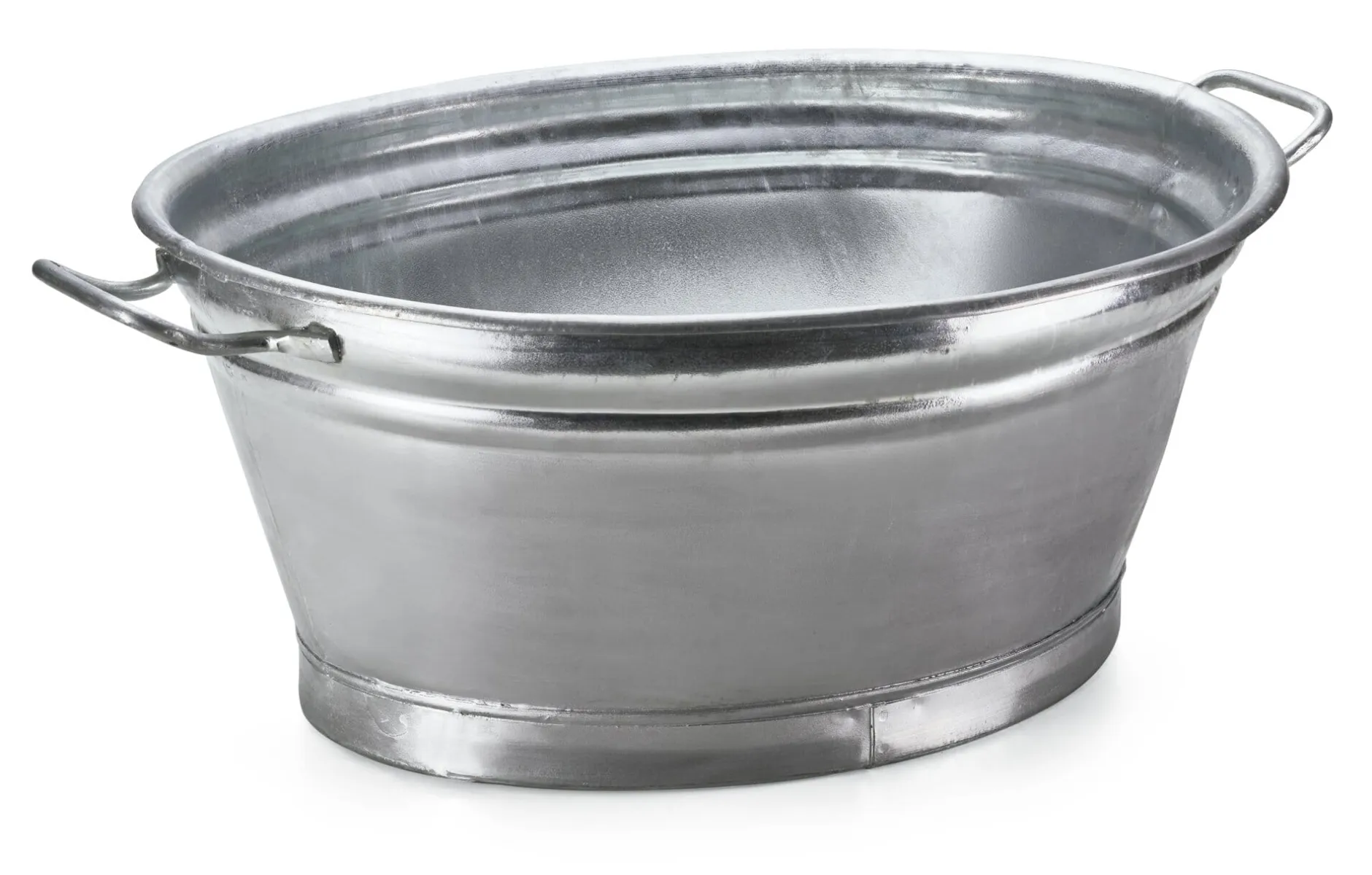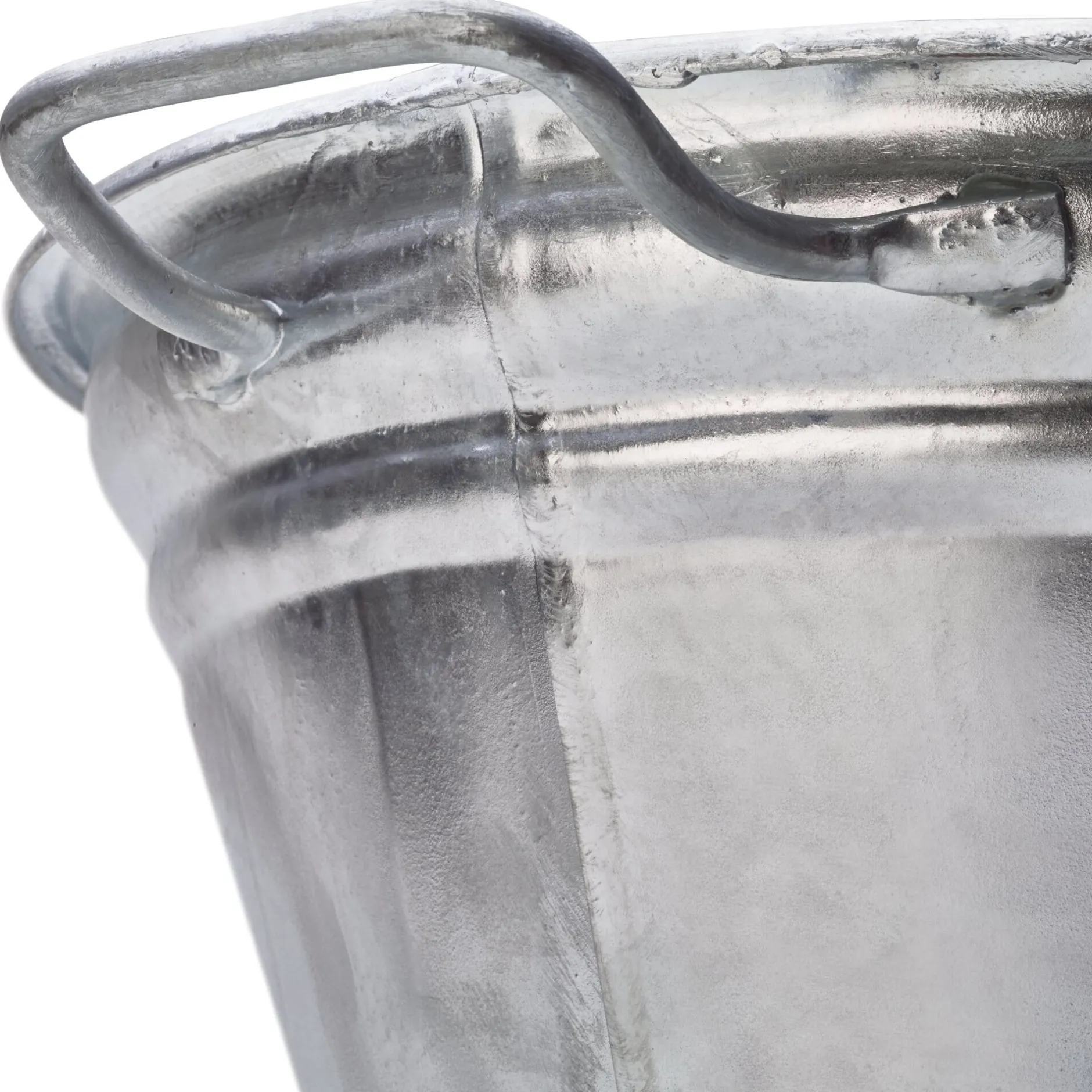 Stahl feuerverzinkt (Stärke 0,6 mm). Mit stabilem Bandeisenfuß (Stärke 1,25 mm) und zwei soliden Henkeln. Gefertigt in Deutschland.