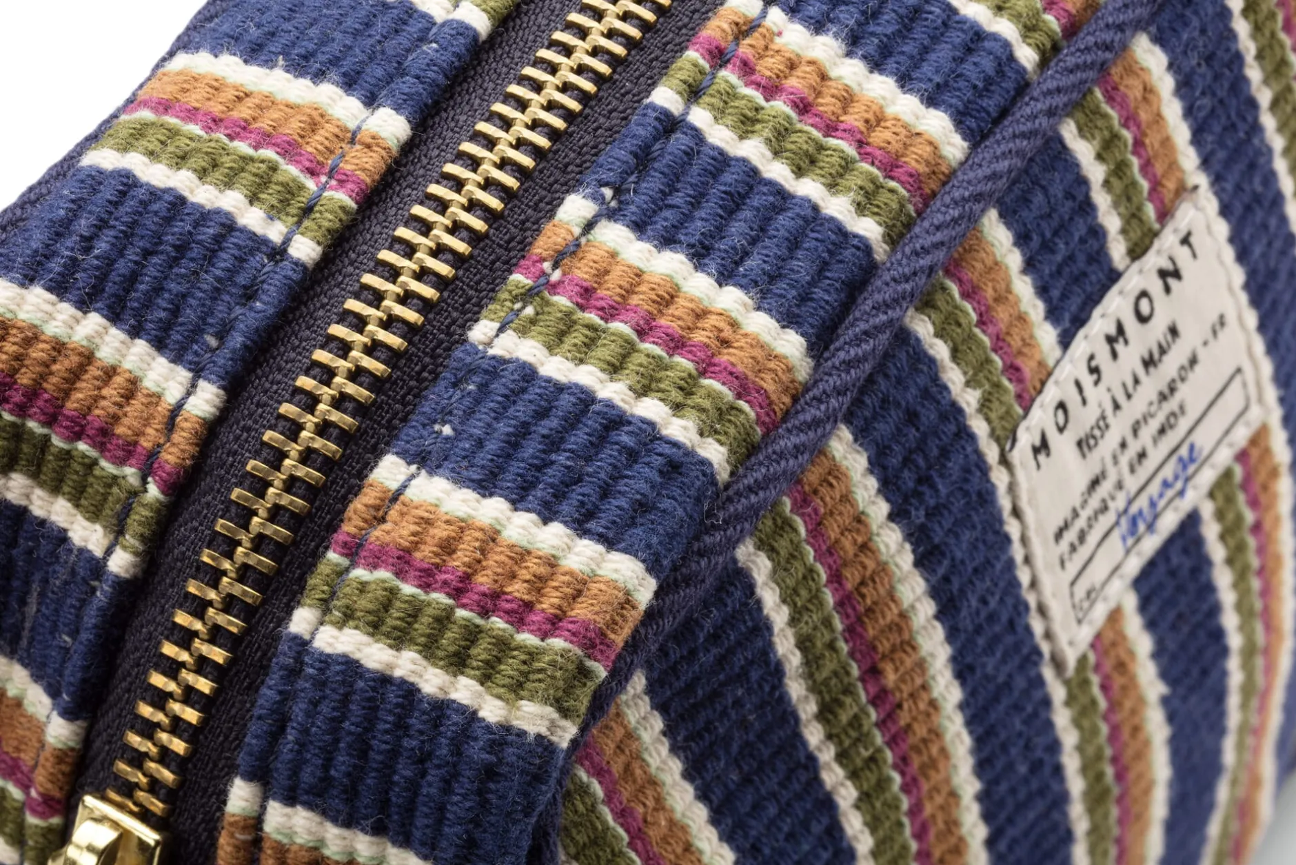 Hinter dem in der französischen Picardie ansässigen Label Moismont stehen Martine und Jacques Bijvoet. Mit ihrer Mode setzen sich die beiden für Authentizität, Traditionen und Werte ein. Es verwundert daher nicht, dass in ihren Schals und Stolen, Kleidungsstücken und Taschen französisches Textildesign und traditionelles indisches Webhandwerk zusammenfinden. Immerhin hat der ursprüngliche Schal (der nach unserem Verständnis eher wie eine Stola getragen wird) einst seinen Weg vom indischen Subkontinent nach Europa gefunden. Und bis heute ist diese Schalkultur in Indien sehr lebendig: Garnfärbe-, Web- und Drucktechniken werden dort von Generation zu Generation weitergegeben – in drei sorgfältig unterschiedenen Berufen, von denen jeder sein eigenes, einzigartiges Know-how besitzt und hütet.