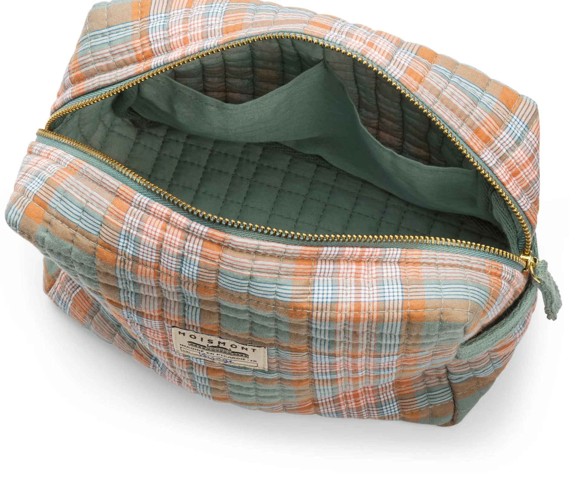 Ein ungewöhnlich schmiegsames, geradezu knautschbares und leichtes Necessaire, das Ihre Hygiene- und Kosmetikartikel mit aller Weichheit schützend beisammen hält. Zwei Lagen aus strapazierbarer Baumwolle sind hier miteinander versteppt, sodass die Wattierung zwischen den Stofflagen nicht verrutschen kann und den Inhalt allseitig wie ein feiner Airbag umschließt. Mit seinem Volumen von knapp zwei Litern nimmt der Kulturbeutel Artikel wie Zahnbürste und Rasierhobel, Shampoo und Nageletui mühelos auf. Ein aufgenähtes Einsteckfach im Innern hält auch die kleinsten unter den Kleinutensilien auffindbar; der obere Rand des Fachs ist in der Mitte angenäht, sodass über den Rand hinausragende Tuben oder Fläschchen auch hier aufrecht vorgehalten werden können. Und sollten Sie den Kulturbeutel gerade nicht benötigen, so lässt er sich klein und fein zusammenlegen (oder auch zusammenknautschen) und platzsparend in Schrank und Schublade verstauen.