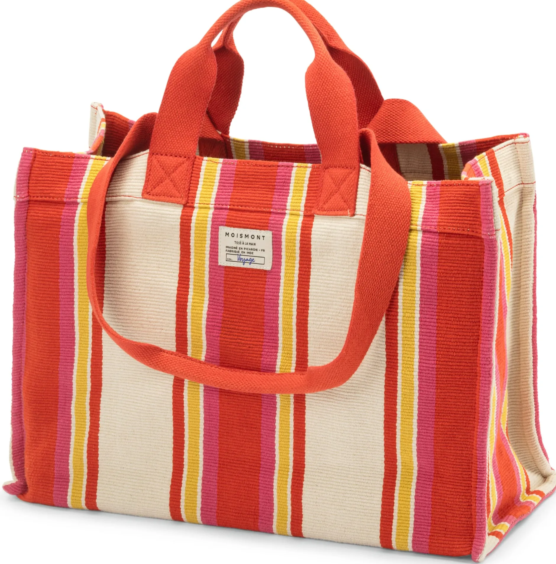 Hinter dem in der französischen Picardie ansässigen Label Moismont stehen Martine und Jacques Bijvoet. Mit ihrer Mode setzen sich die beiden für Authentizität, Traditionen und Werte ein. Es verwundert daher nicht, dass in ihren Schals und Stolen, Kleidungsstücken und Taschen französisches Textildesign und traditionelles indisches Webhandwerk zusammenfinden. Immerhin hat der ursprüngliche Schal (der nach unserem Verständnis eher wie eine Stola getragen wird) einst seinen Weg vom indischen Subkontinent nach Europa gefunden. Und bis heute ist diese Schalkultur in Indien sehr lebendig: Garnfärbe-, Web- und Drucktechniken werden dort von Generation zu Generation weitergegeben – in drei sorgfältig unterschiedenen Berufen, von denen jeder sein eigenes, einzigartiges Know-how besitzt und hütet.