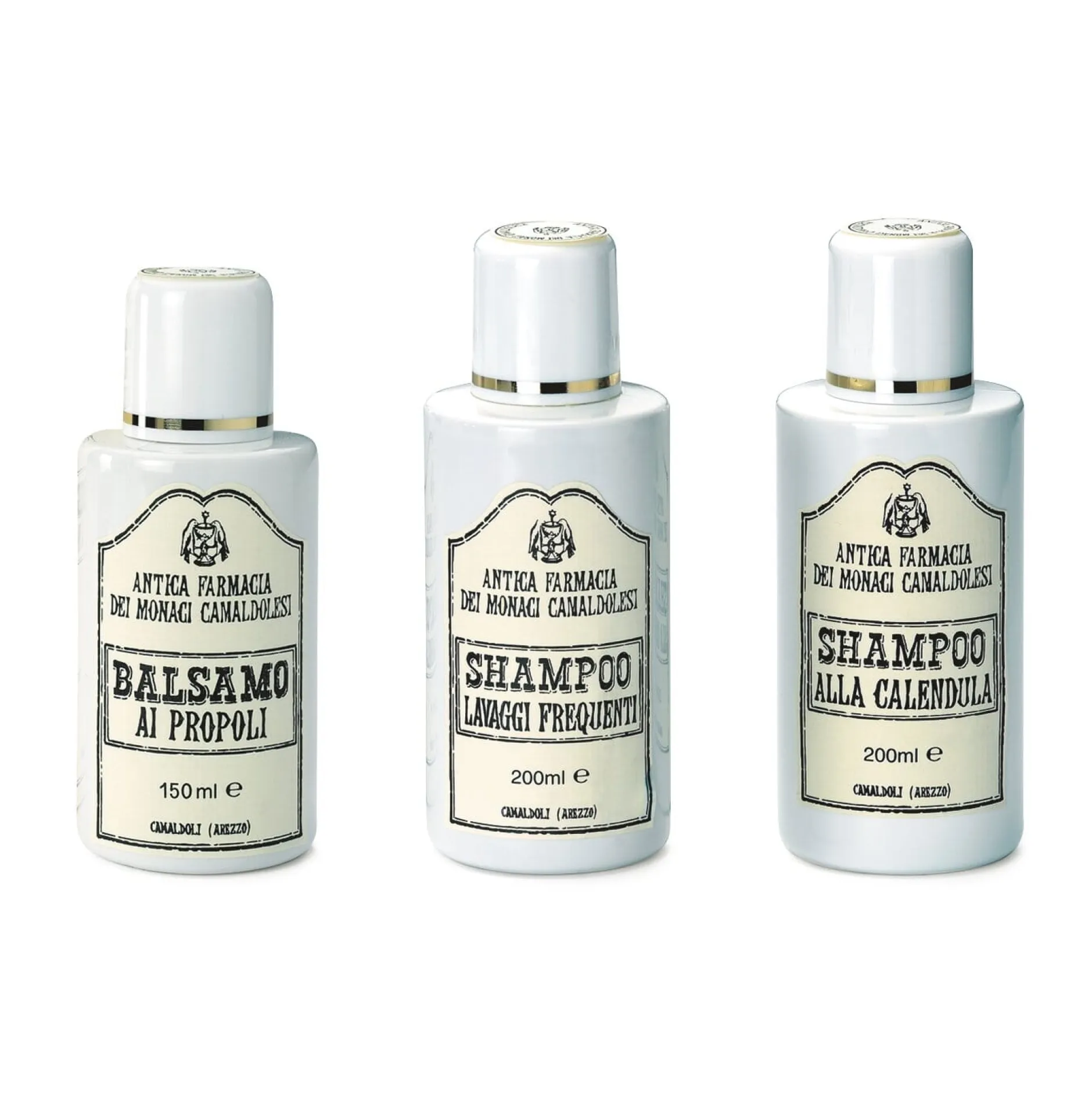 Die von den Camaldulensern entwickelten Shampoos enthalten auf einer Tensidgrundlage jeweils einen auf den entsprechenden Haartyp abgestimmten Wirkstoff. Sie sind mild, fein parfümiert und sehr sparsam in der Anwendung; eine Flasche reicht selbst bei täglicher Anwendung länger als sechs Wochen. Das Haar wird gründlich gereinigt und lässt sich hervorragend frisieren.
