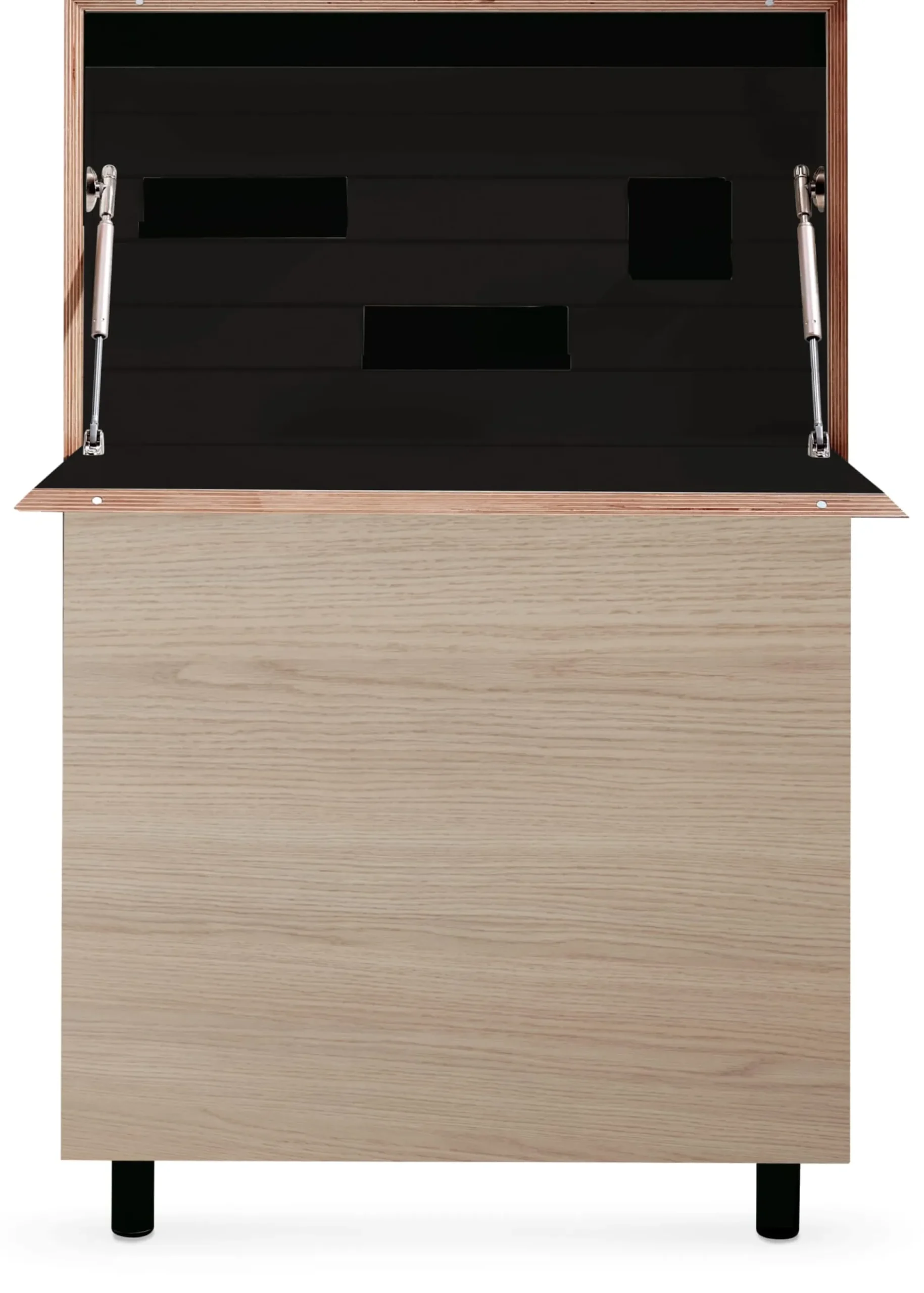 Der Sekretär verfügt beidseitig über je eine zusätzliche Tür. Hier steht weiterer Stauraum zur Verfügung. Die drei Fächer auf jeder Seite bieten Platz für einen 8 cm breiten Standardordner, einen 17-Zoll-Laptop und vieles mehr.