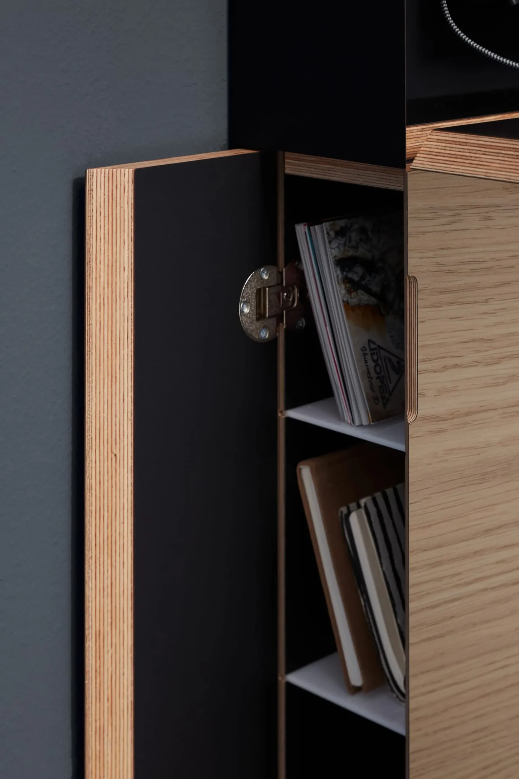 FLATMATE ist raumsparender Sekretär und besitzt im geschlossenen Zustand eine Grundfläche von lediglich 0,09 m². Dank seiner geringen Tiefe von etwa 13 cm und seines unauffälligen Äußeren ist FLATMATE ein perfektes Funktionsmöbel. So werden enge Altbauflure, kleine Schlafzimmer oder das Ferienhaus zu temporären Arbeitsplätzen. Die variable Innenausstattung mit Ablagemöglichkeiten für Papier, Stift und Smartphone verbindet Merkmale eines klassischen Möbeltyps mit den Erfordernissen des vernetzten Lebens und Arbeitens und lässt sich flexibel an der Rückwand einhängen.