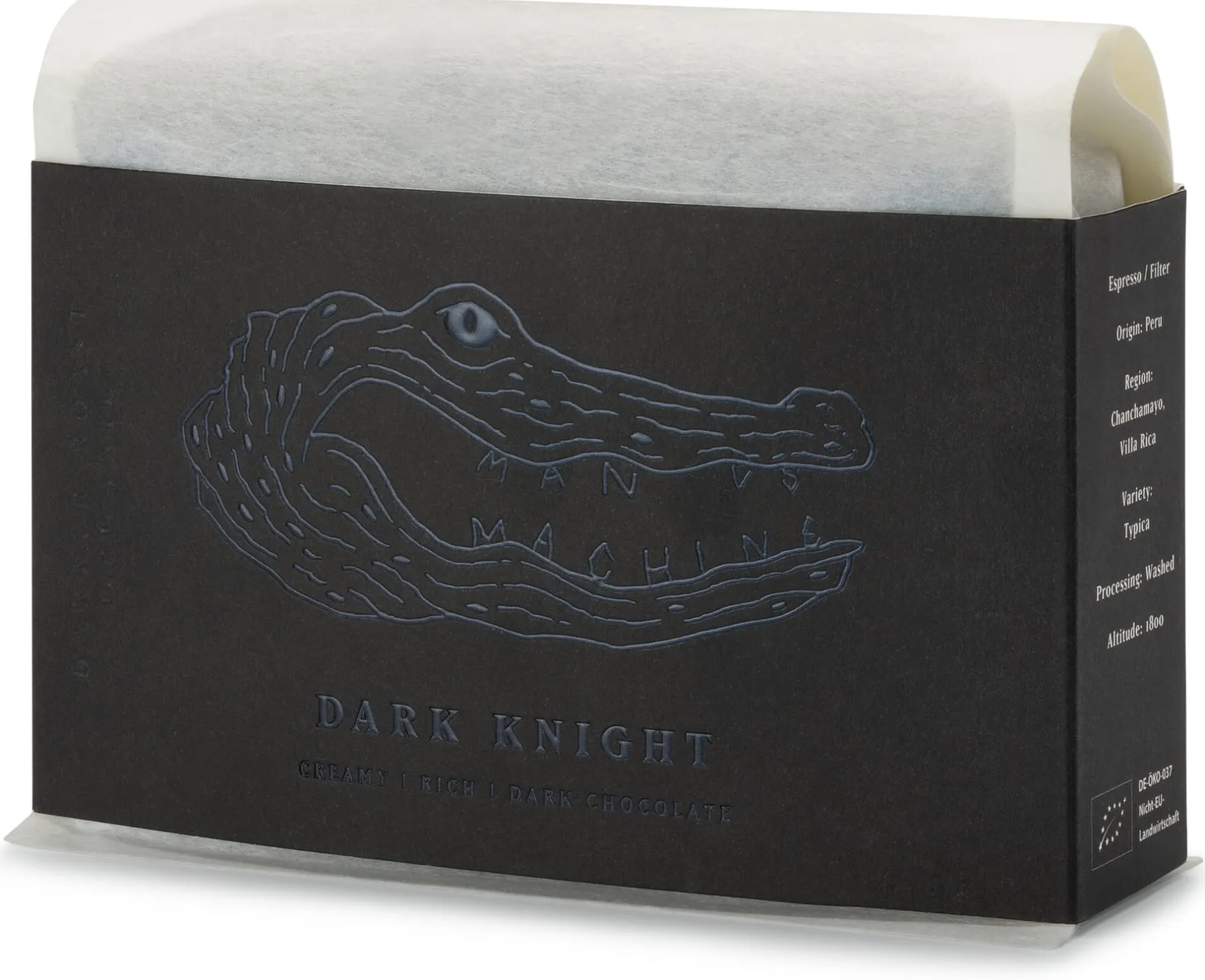 Die Bohnen für den Dark Knight stammen aus der Gegend um die Stadt Villa Rica in der zentralperuanischen Region Chanchamayo. Chanchamayo besitzt eine üppige Vegetation mit dichten Regenwäldern, Wasserfällen und Flüssen. Zugleich kommen von den dortigen Kaffeefarmen einige der besten Kaffees des Landes, denn die Region bietet ideale Bedingungen für ihren Anbau. Man versus Machine verwendet für den Dark Knight auf 1.800 m ü. NN angebaute Bohnen der Sorte Typica, einer der ältesten und bekanntesten Arabica-Sorten. Die Typica zeichnet sich durch ein ausgewogenes und vielschichtiges Aromaprofil, eine angenehme, lebhafte Säure und einen mittleren bis vollmundigen Körper aus. Der Dark Knight präsentiert einen reichen Geschmack mit cremigen Noten und Aromen dunkler Schokolade.