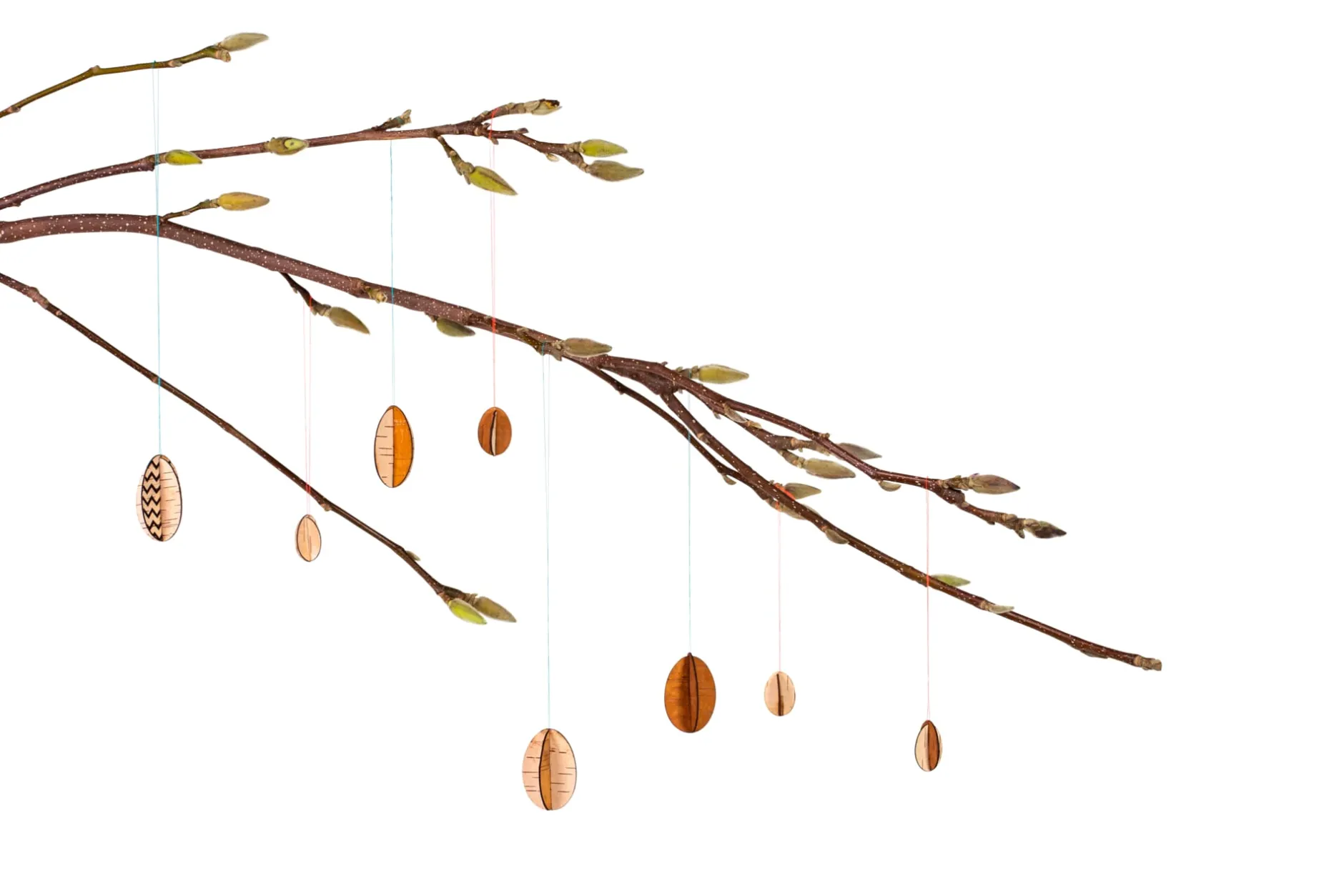 Ostergruß und dekorativer Schmuck: Diese Anhänger aus Birkenrinde lassen sich spielend leicht aus der vorgestanzten Fläche aus Birkenrinde herausdrücken und einfach zusammenstecken. Die samtig weiche Oberfläche der Rinde ist ein Handschmeichler und steht mit ihrem warmen Naturfarbton in einem schönen Kontrast zu zartem Frühlingsgrün. Sie erhalten die Anhänger – je ein großes und ein kleines Ei – in Form einer Karte flach verpackt in einem semitransparenten Papierkuvert. Von außen lassen sich schon die dekorativen Motive erkennen. Bunte Fäden zum Aufhängen und eine Anleitung zum einfachen Zusammenstecken liegen bei.