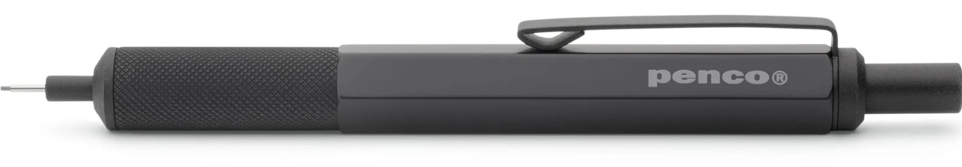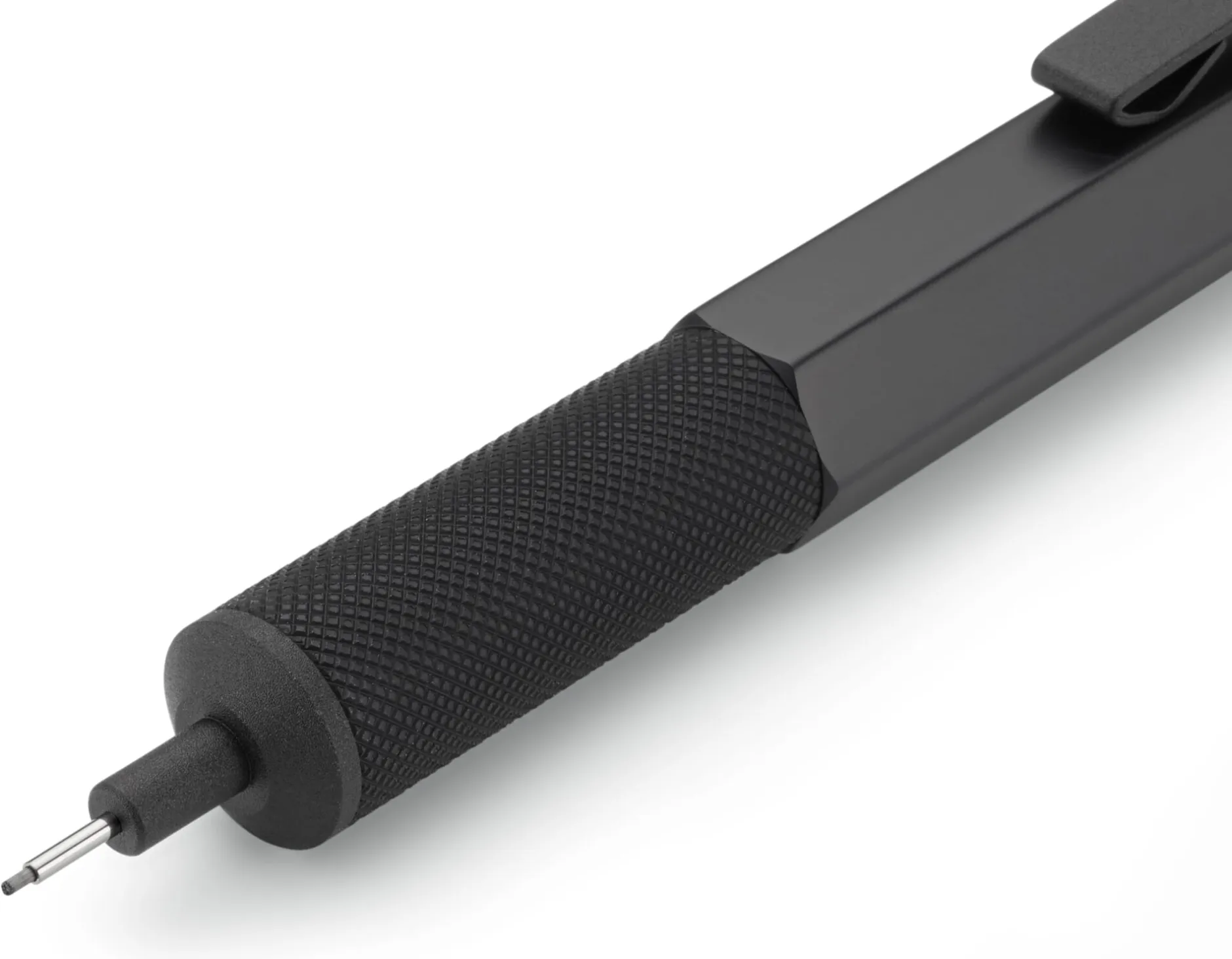Präzise Mechanik und gutes Schreibgefühl aus Japan: Dieser an professionelle Zeichenstifte angelehnte Druckbleistift im Taschenformat ist aus Aluminium gefertigt und anschließend pulverbeschichtet – daher seine Leichtigkeit und seine widerstandsfähige Oberfläche. Der fein gerändelte Griffbereich sorgt für Halt beim Schreiben und Zeichnen, der Clip aus Federstahl beim Transport in der Tasche. Im Inneren des Drückers befindet sich ein Radiergummi.