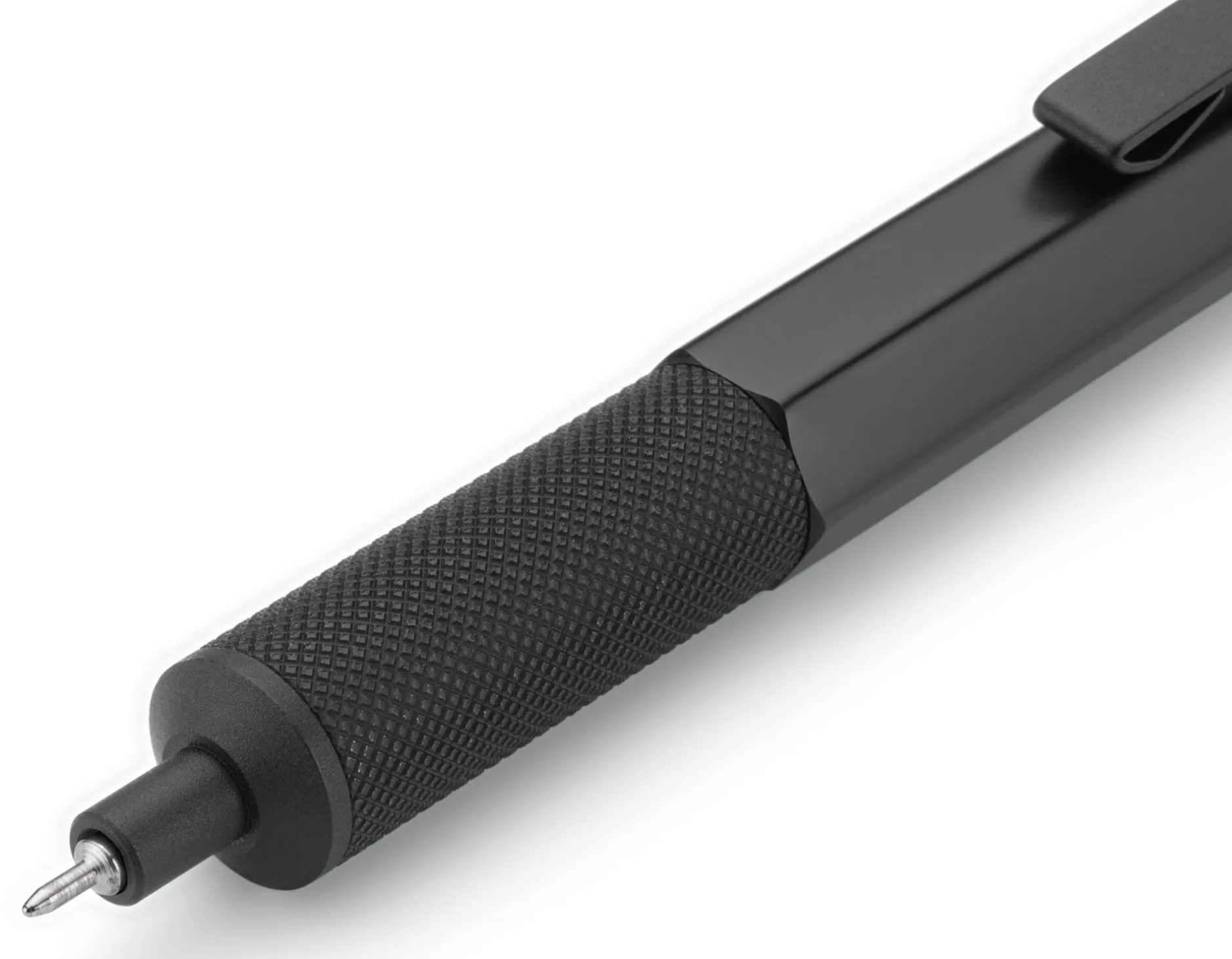 Präzise Mechanik und gutes Schreibgefühl aus Japan: Dieser an professionelle Zeichenstifte angelehnte Tintenroller im Taschenformat ist aus Alumium gefertigt und anschließend pulverbeschichtet – daher seine Leichtigkeit und seine widerstandsfähige Oberfläche. Der fein gerändelte Griffbereich sorgt für Halt beim Schreiben und Zeichnen, der Clip aus Federstahl beim Transport in der Tasche. Bei Betätigung des Drückers verschwindet die Feinmine im Inneren des Stifts – keine Tintenflecken in Hemden, Hosen und Taschen.