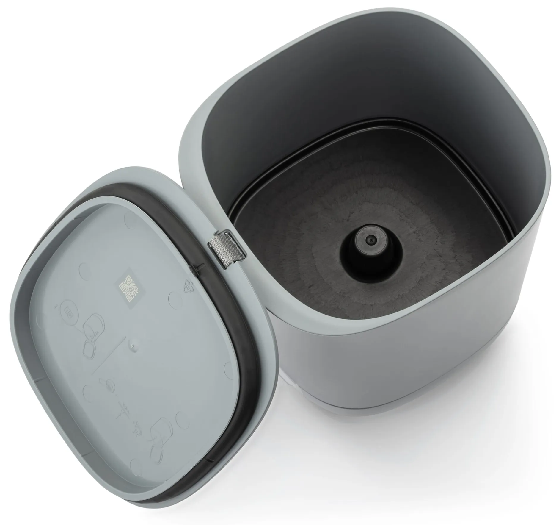 Behälter aus Polypropylen. Füllmenge 10,6 l, Flüssigkeitsvolumen 0,25 l. Höhe 35 cm, Breite 24 cm, Tiefe 25,5 cm. Gewicht 3 kg. Ein 600-g-Beutel Ferment und drei Filterpapiere werden mitgeliefert.