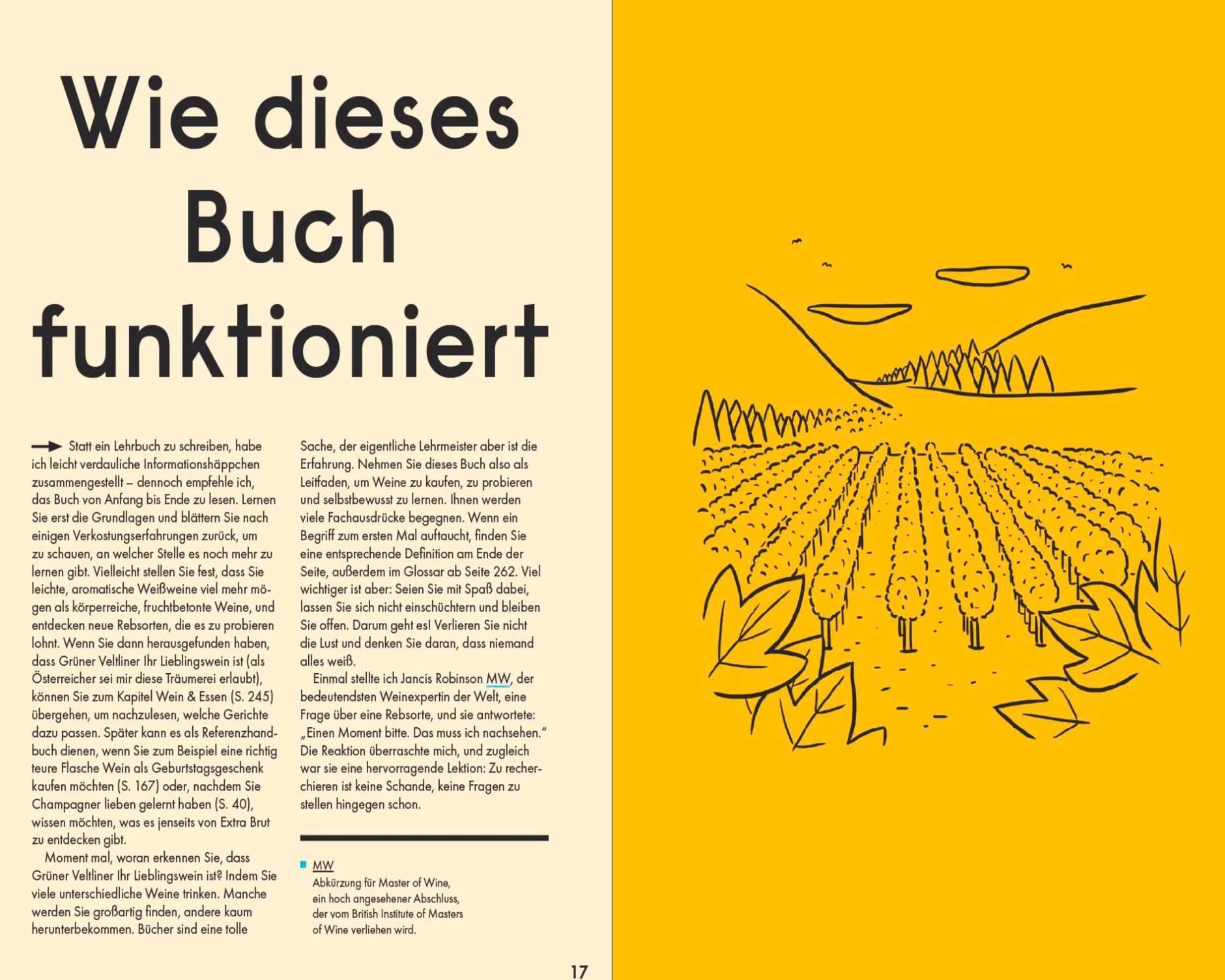 Endlich ein Weinführer ohne Schnickschnack: Der Sommelier Aldo Sohm wählt einen erfrischend anderen Ansatz und bringt das flüssige Kulturgut Einsteigern und Kennern mit gut aufbereiteten Wissenshäppchen, Spickzetteln und einer Geschmacksbibliothek nahe. Schön illustriert und gestaltet bringt das Buch auf den Punkt, worum es geht: ganz einfach Wein!