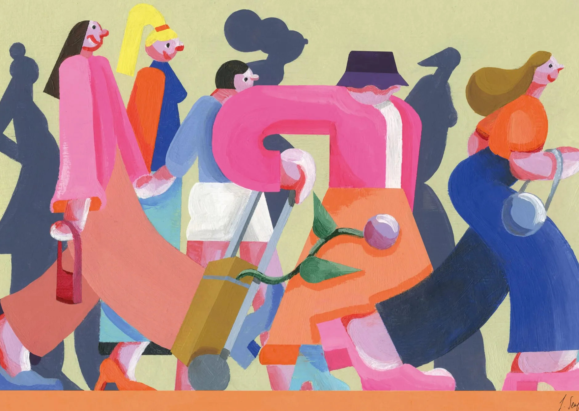 Dass dichtes Menschentreiben heiter und sogar entschleunigend sein kann, zeigt dieses Puzzle in 1000 Teilen: Illustriert von der Berliner Künstlerin Jill Senft, entfaltet sich in leuchtenden Farben Stück für Stück eine Szenerie surrealer, überdimensionierter Figuren, die freudig lächelnd einander folgen. Ihr Ziel bleibt der Fantasie der Betrachtenden überlassen – es kann nur schön sein!