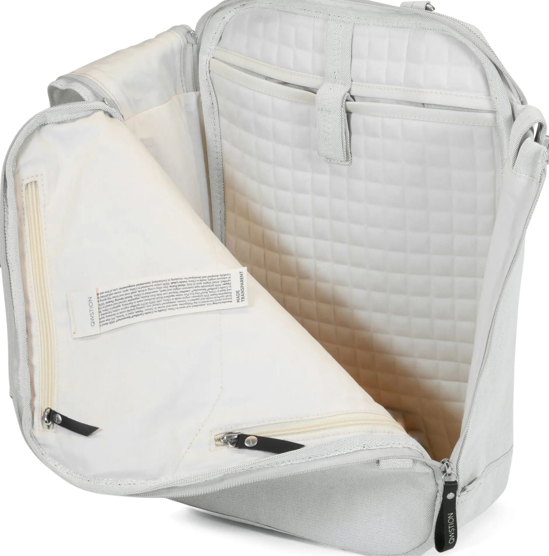 Geprägt von der Handschrift des Schweizer Designs entwickelt das QWSTION-Team von Zürich aus zeitlose Entwürfe mit praktischen Details – und das in beeindruckender Präzision. Jede Tasche ist z. B. gleichzeitig auch ein Rucksack – und andersherum. Charakteristisch sind die breiten Gewebegurtbänder. Sie bilden – aufwendig und robust vernäht – bei fast allen Teilen der Serie die Struktur der Taschen. Dank des strapazierfähigen Außenmaterials und vieler praktischer Ausstattungsdetails sind sie perfekte Begleiter für den Alltag.