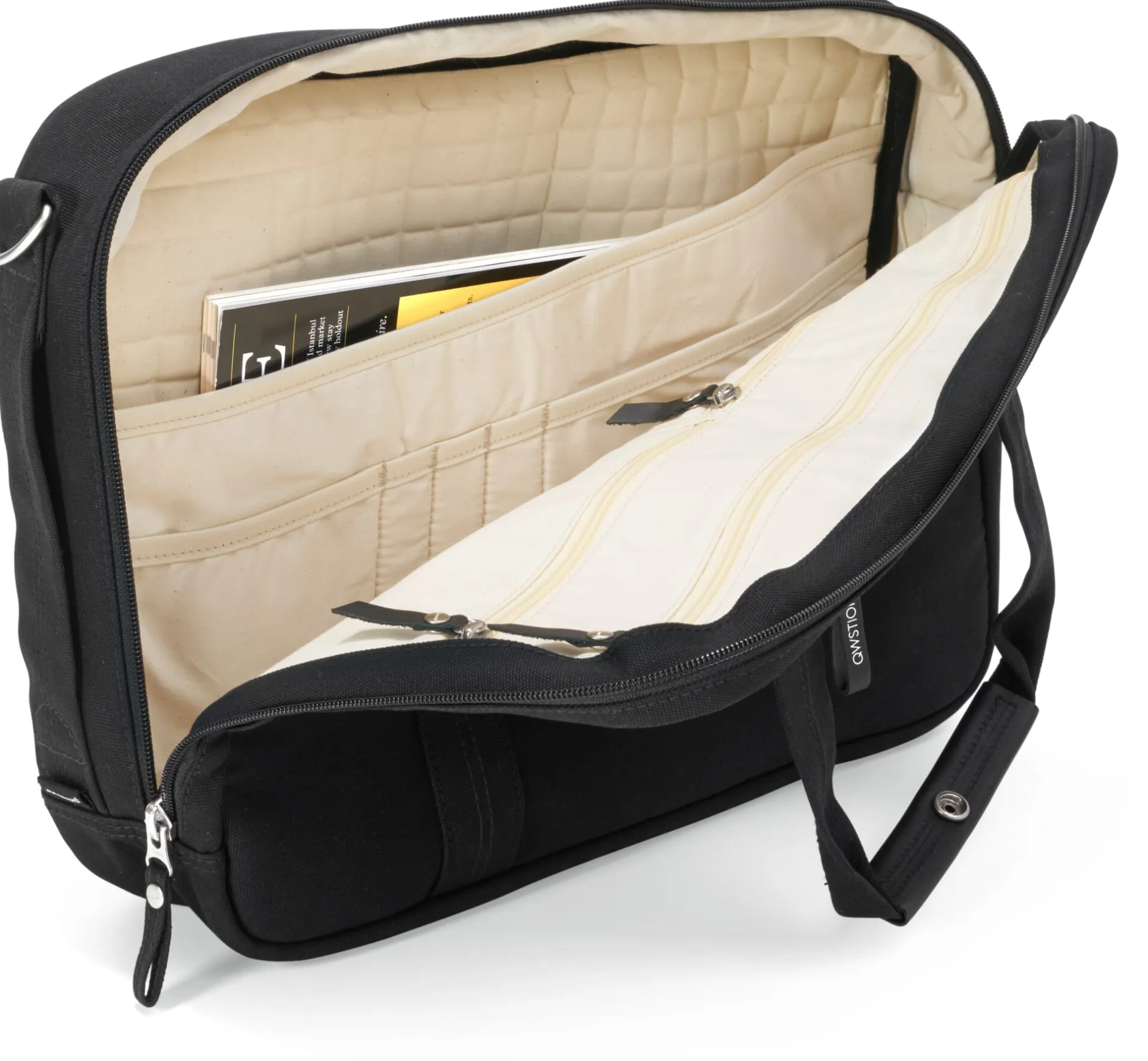 Geprägt von der Handschrift des Schweizer Designs entwickelt das QWSTION-Team von Zürich aus zeitlose Entwürfe mit praktischen Details – und das in beeindruckender Präzision. Jede Tasche ist z. B. gleichzeitig auch ein Rucksack – und andersherum. Charakteristisch sind die breiten Gewebegurtbänder. Sie bilden – aufwendig und robust vernäht – bei fast allen Teilen der Serie die Struktur der Taschen. Dank des strapazierfähigen Außenmaterials und vieler praktischer Ausstattungsdetails sind sie perfekte Begleiter für den Alltag.