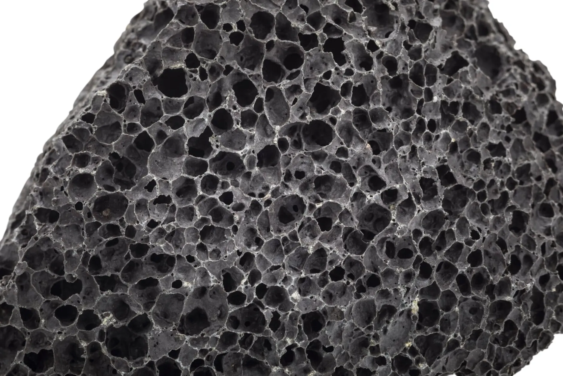 Schwarzer, gröberer Bimsstein aus dem Iran.