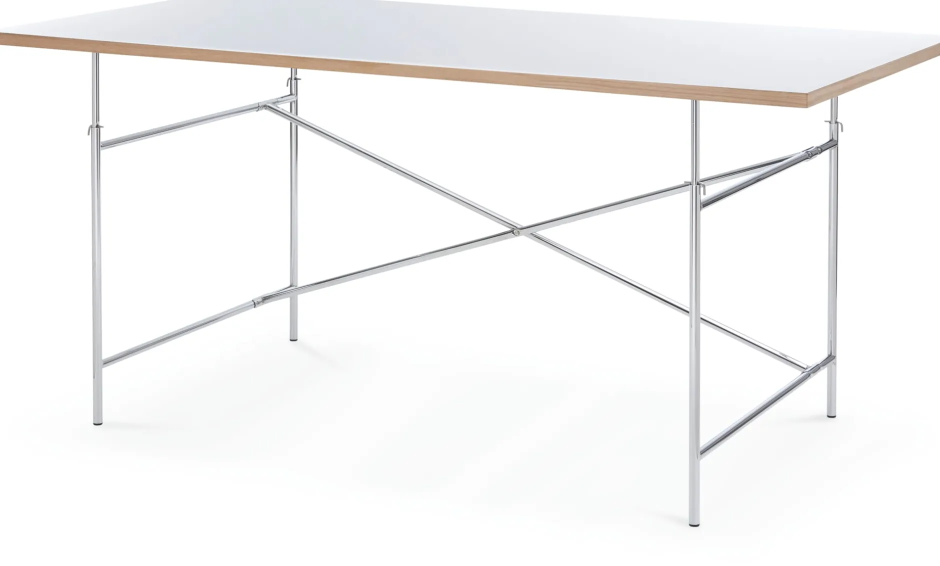 Praktische Variante des Originals: Im Umfeld von Egon Eiermann entstand 1965 in der Schlosserei der Hochschule Karlsruhe eine zerlegbare Variante des originalen Eiermann Tischgestells – eine Interpretation, die nicht von Egon Eiermann selbst stammt, sondern von einem seiner Assistenten initiiert wurde. Anders als beim Original sitzt das Kreuz nicht in der Raumschrägen, sondern rechtwinklig zwischen den Seitenteilen. Die Kreuzstrebenrohre werden Rücken an Rücken miteinander und über die an ihren Enden angeschweißten Rohrsegmente mit den Seitenteilen verschraubt. Praktischer Nebeneffekt: Durch das Aufrichten der Kreuzstreben entstand unter der Tischplatte mehr Stau- und Beinraum.