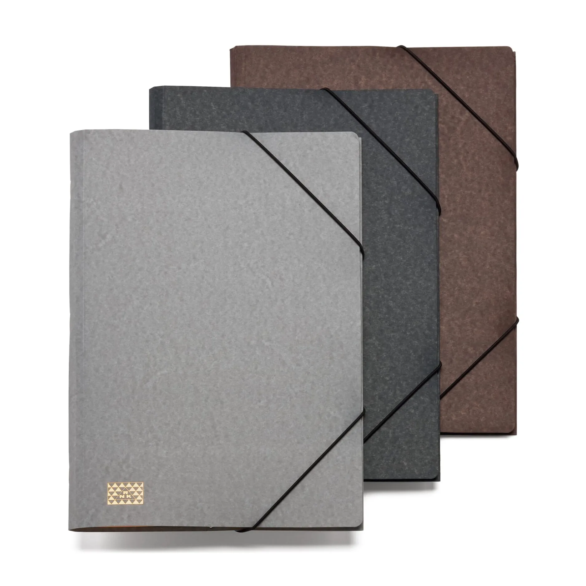 Die Fächermappe wird in Deutschland aus bewährten Materialien – Pressspanersatzkarton (390 g/qm) und innen Manilakarton (250 g/qm) – gefertigt und ist mit einem Gummiband versehen, das alles beim Transport zusammenhält.